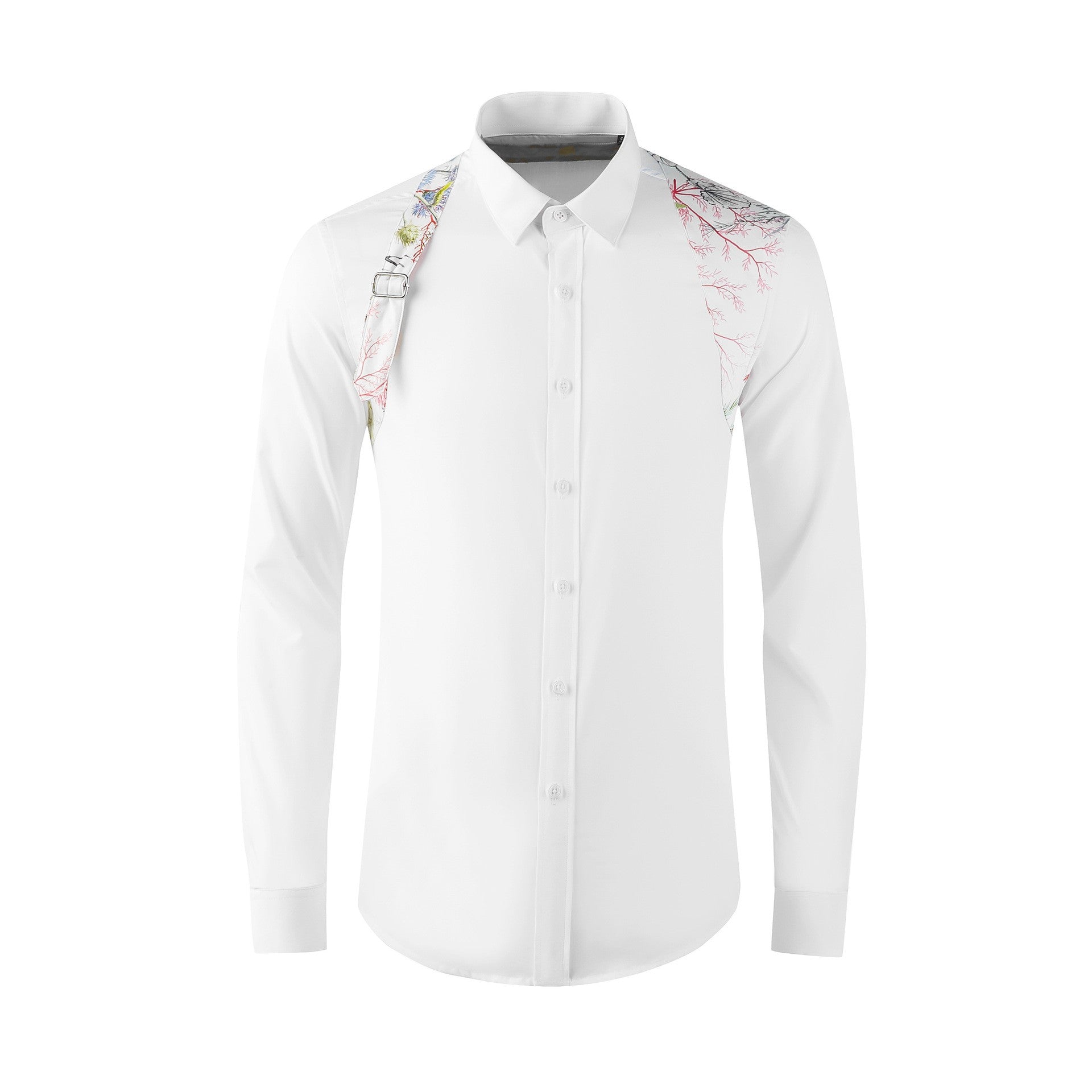 Fashion Shoulder Strap Splicing Long Sleeved Men's Shirt Cargo Casual Daily Shirts Slim Fit Cotton Business Party Social Tops