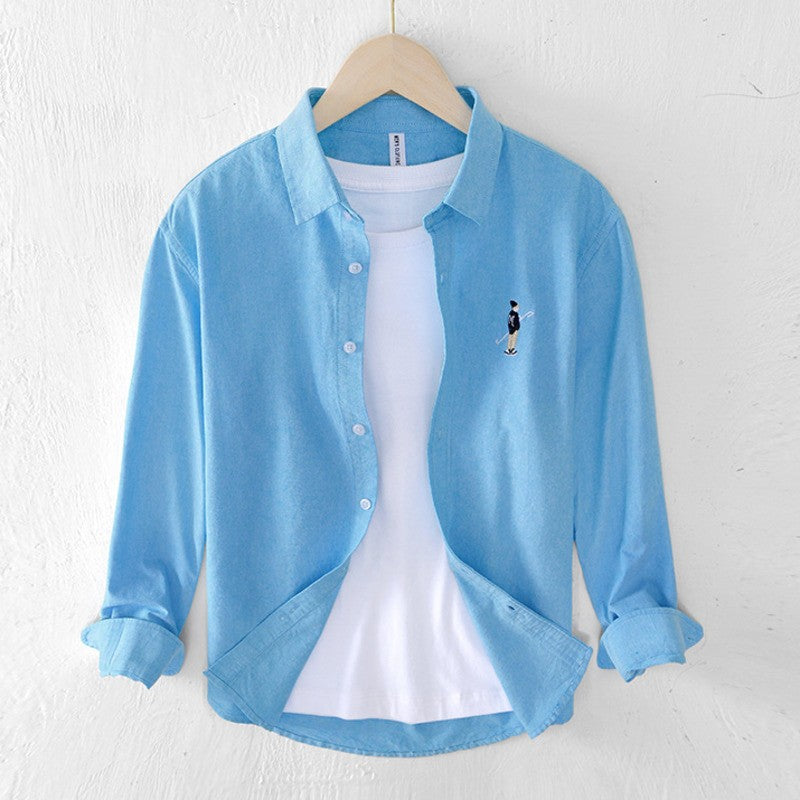 Washed Vintage Cargo Shirts Men Cotton Long Sleeve Shirt High Quality Embroidery Sold Color Fitness Shirt Male Camisa Masculina