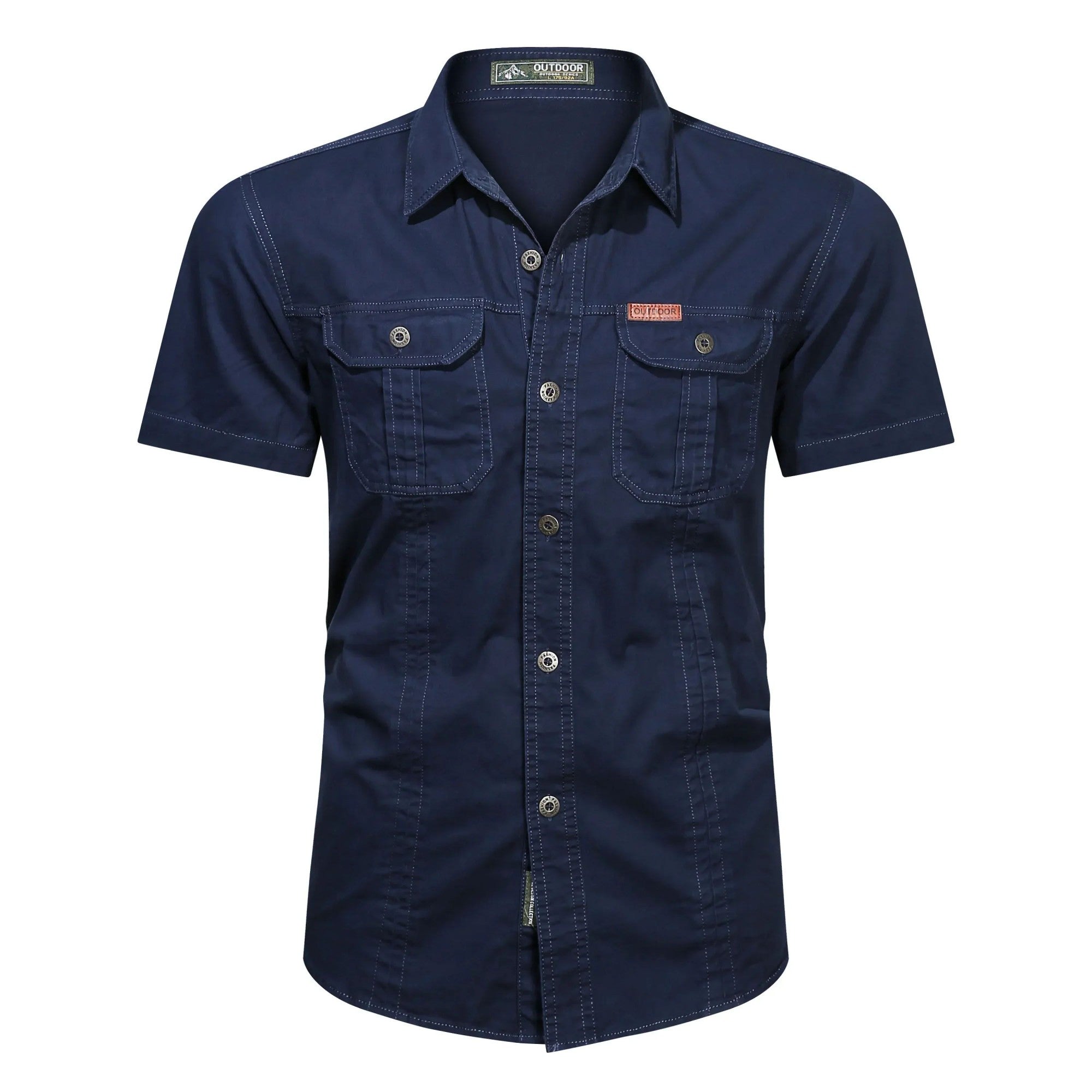 Men's Streetwear Casual Button Down Military Cargo Shirt Short Sleeve Cotton Dress Shirts For Hiking Fishing Golf Polos Shirts