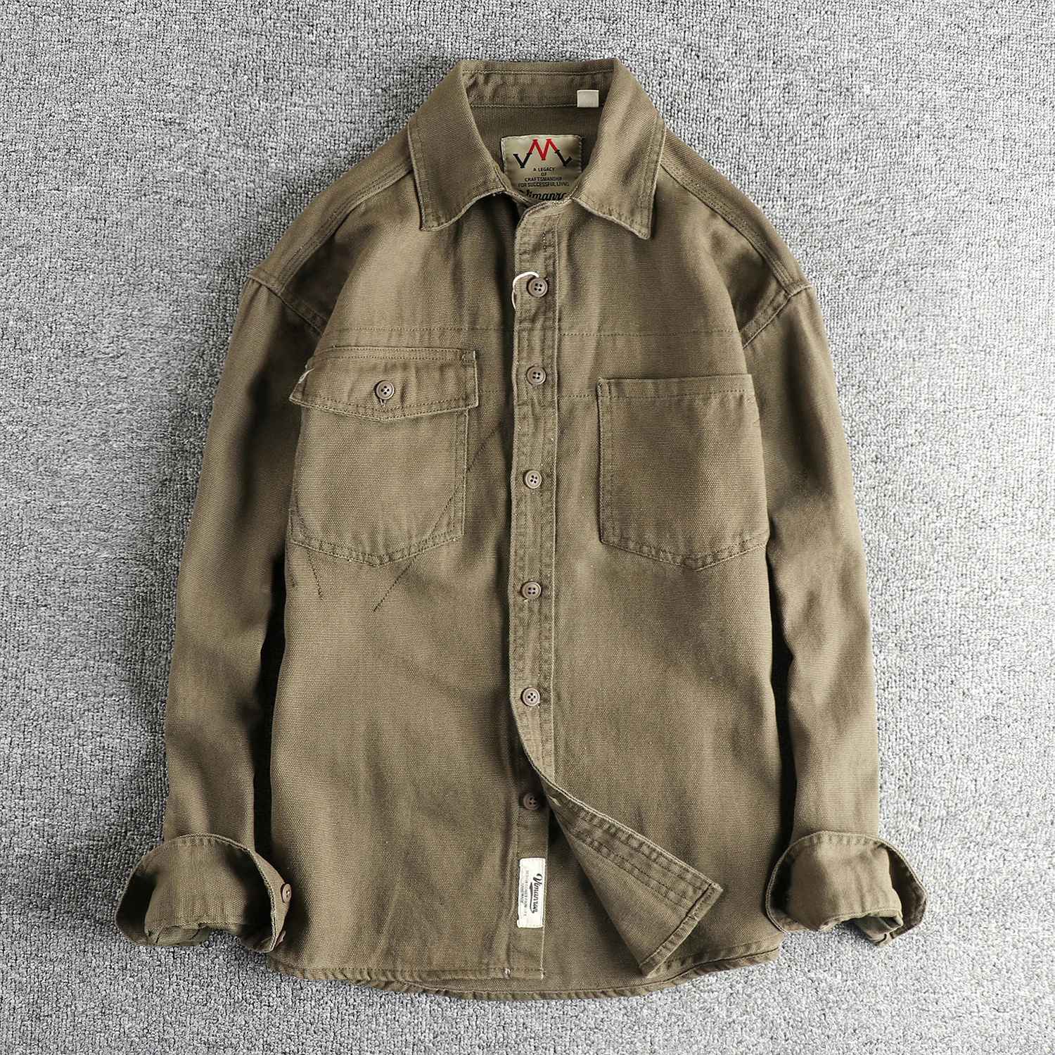 2025 Spring and Autumn New American Retro Woven Twill Cargo Shirt Men's Simple 100% Cotton Washed Double Pocket Causal Blousers