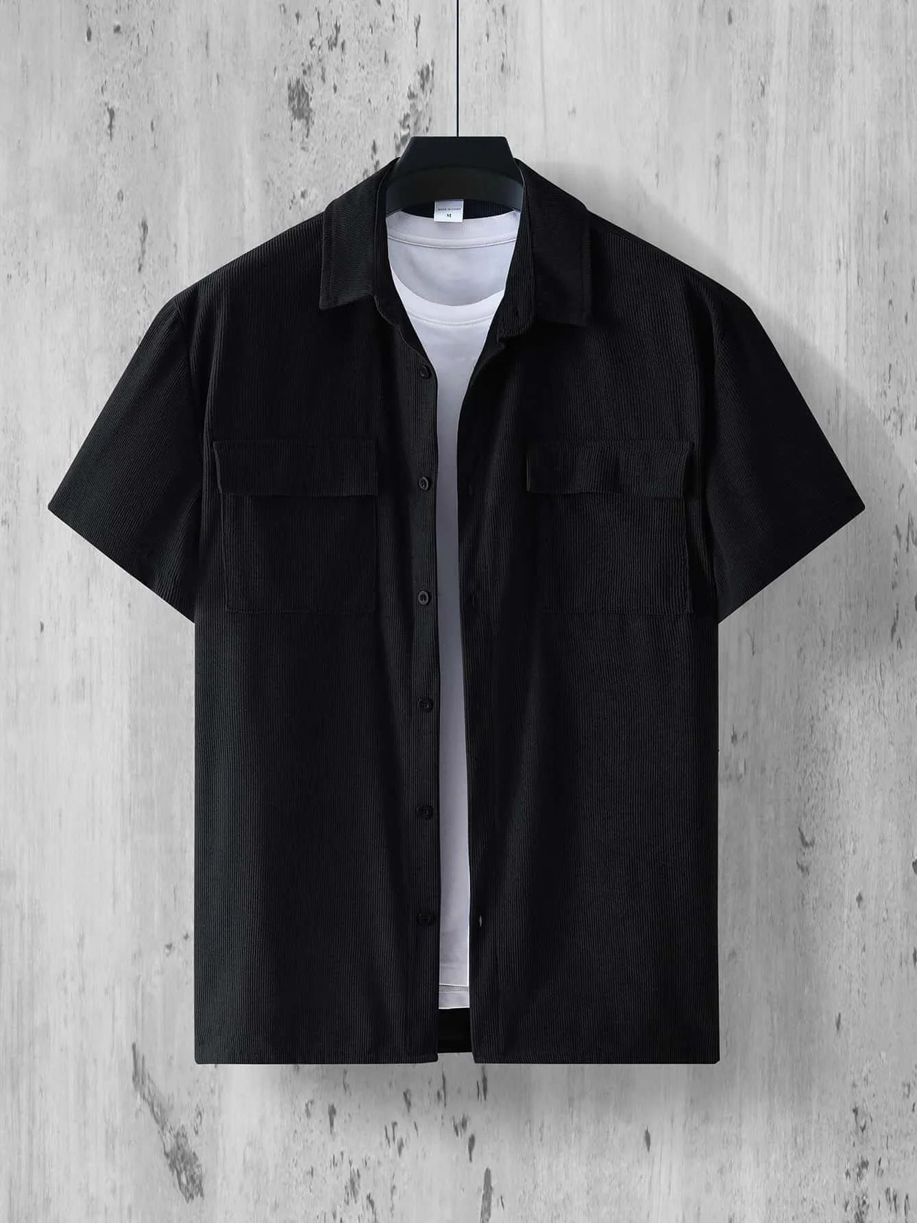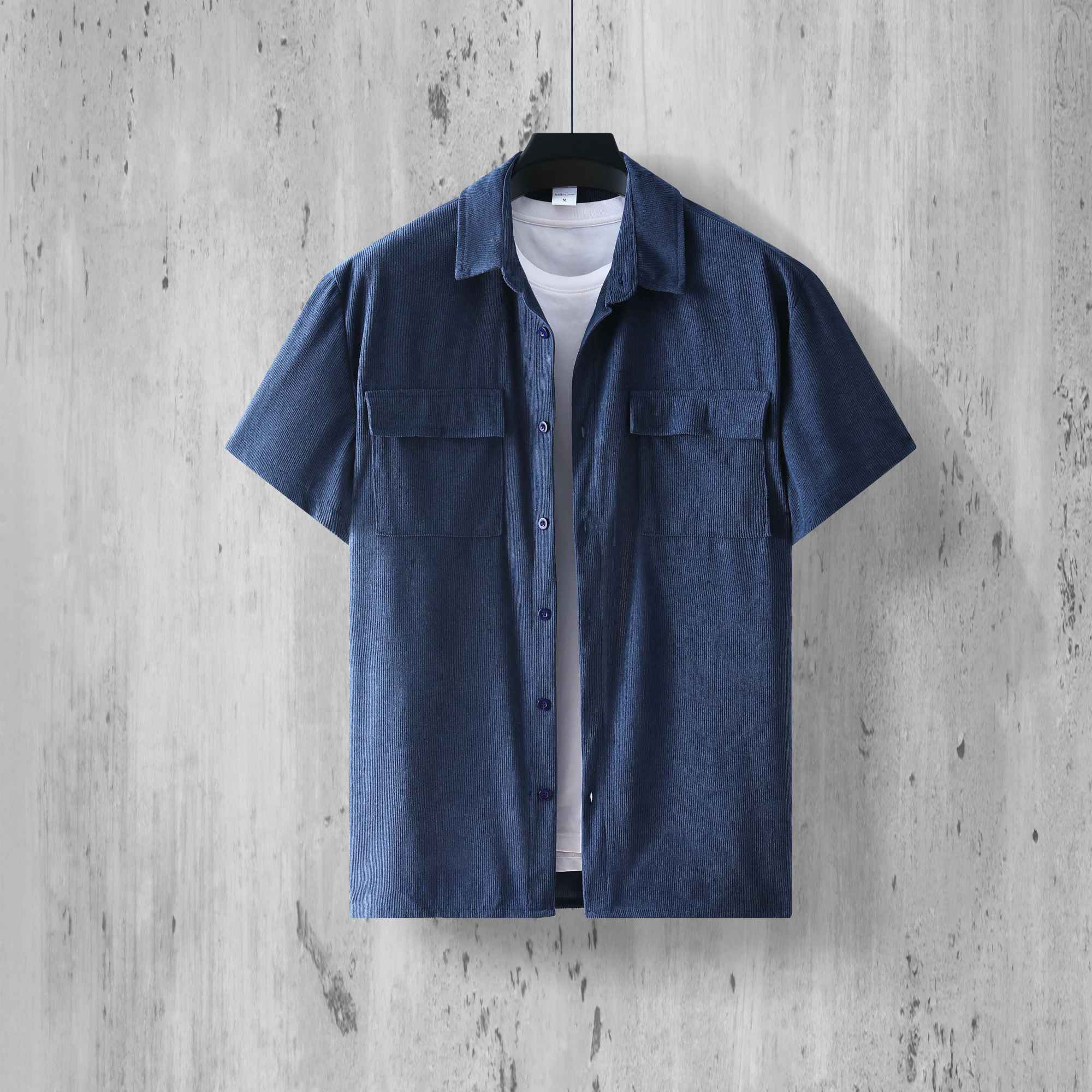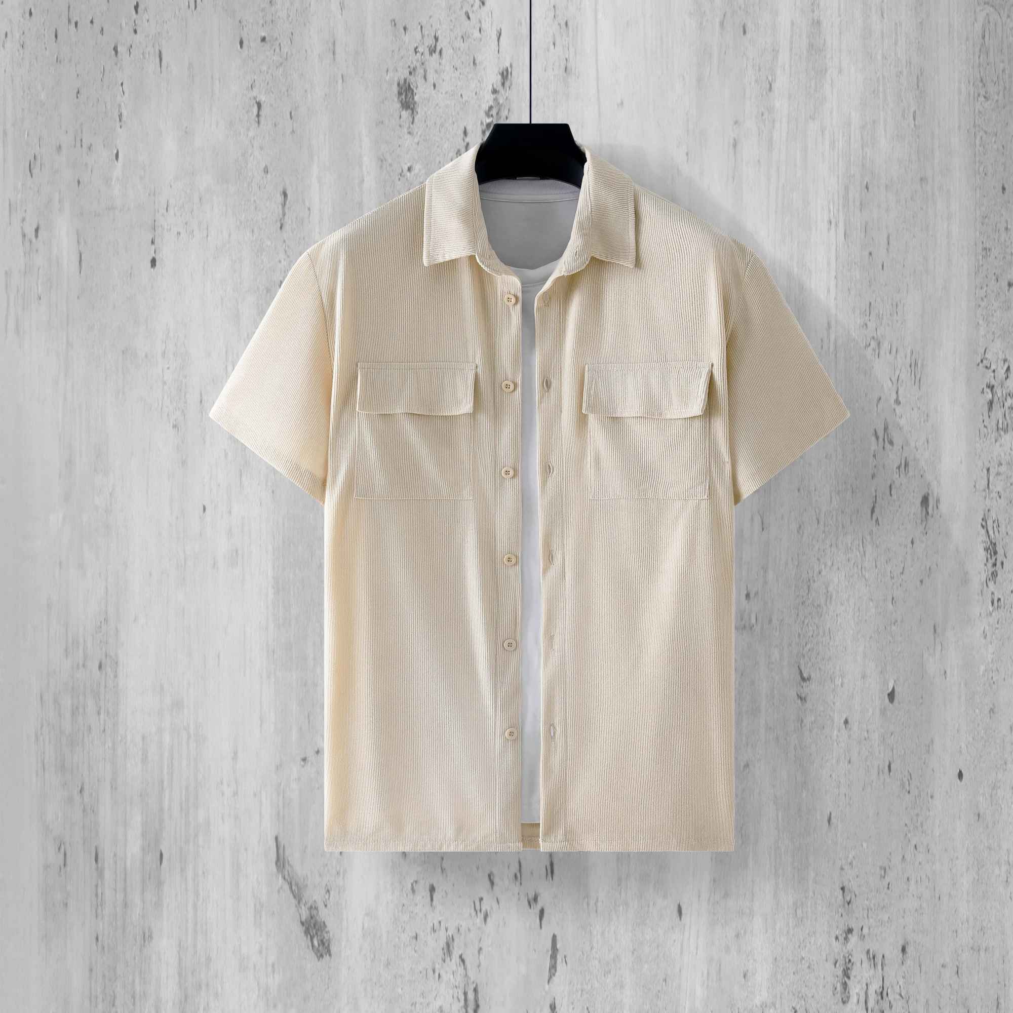 Fashion Ribbed Textured Corduroy Cargo Shirt Men Summer New Casual Solid Color Buttoned Shirts Mens Leisure Short Sleeve Shirts