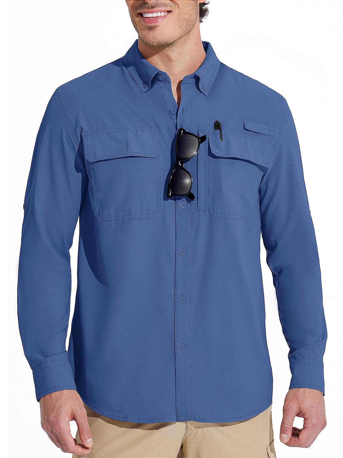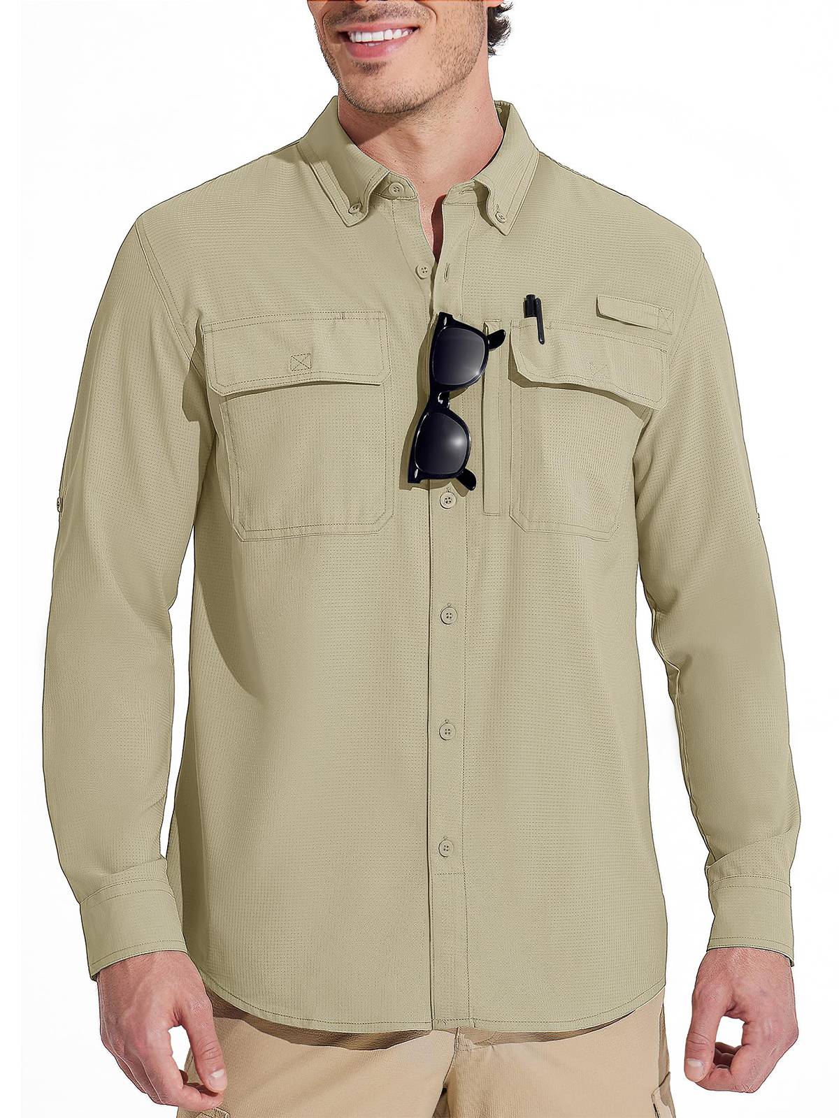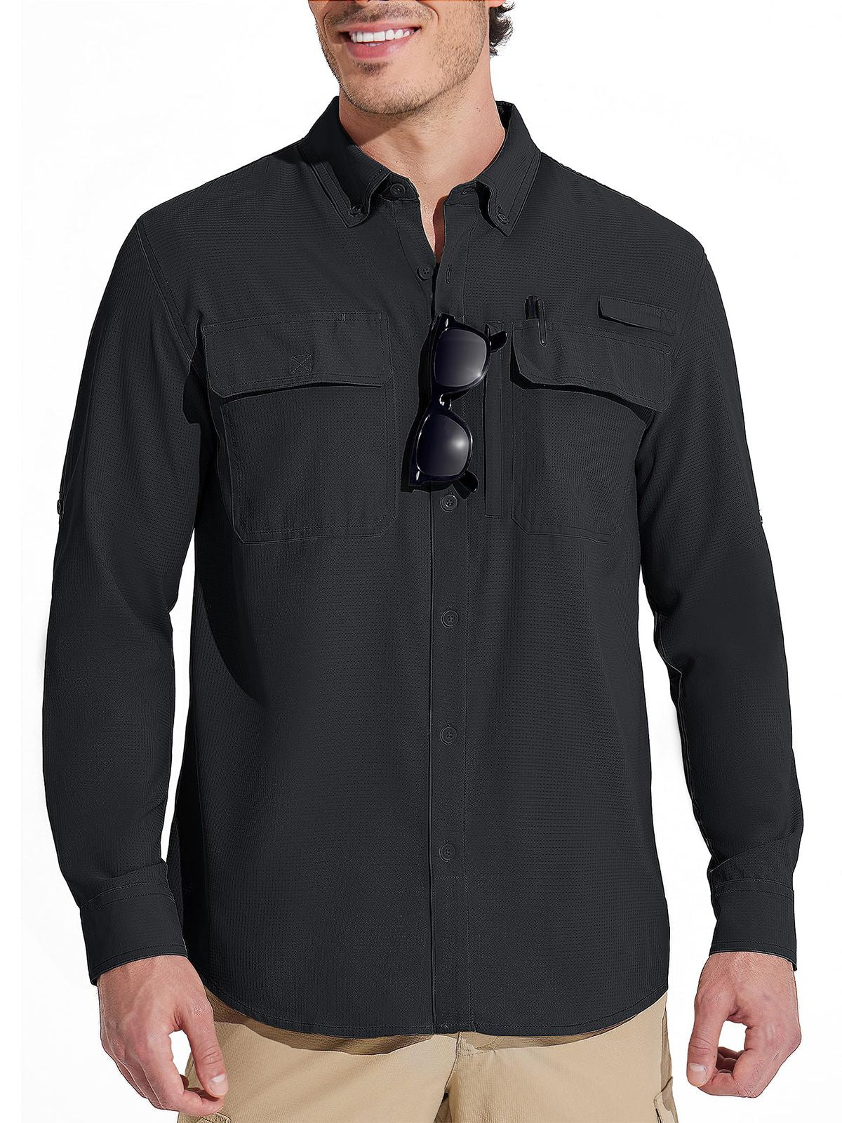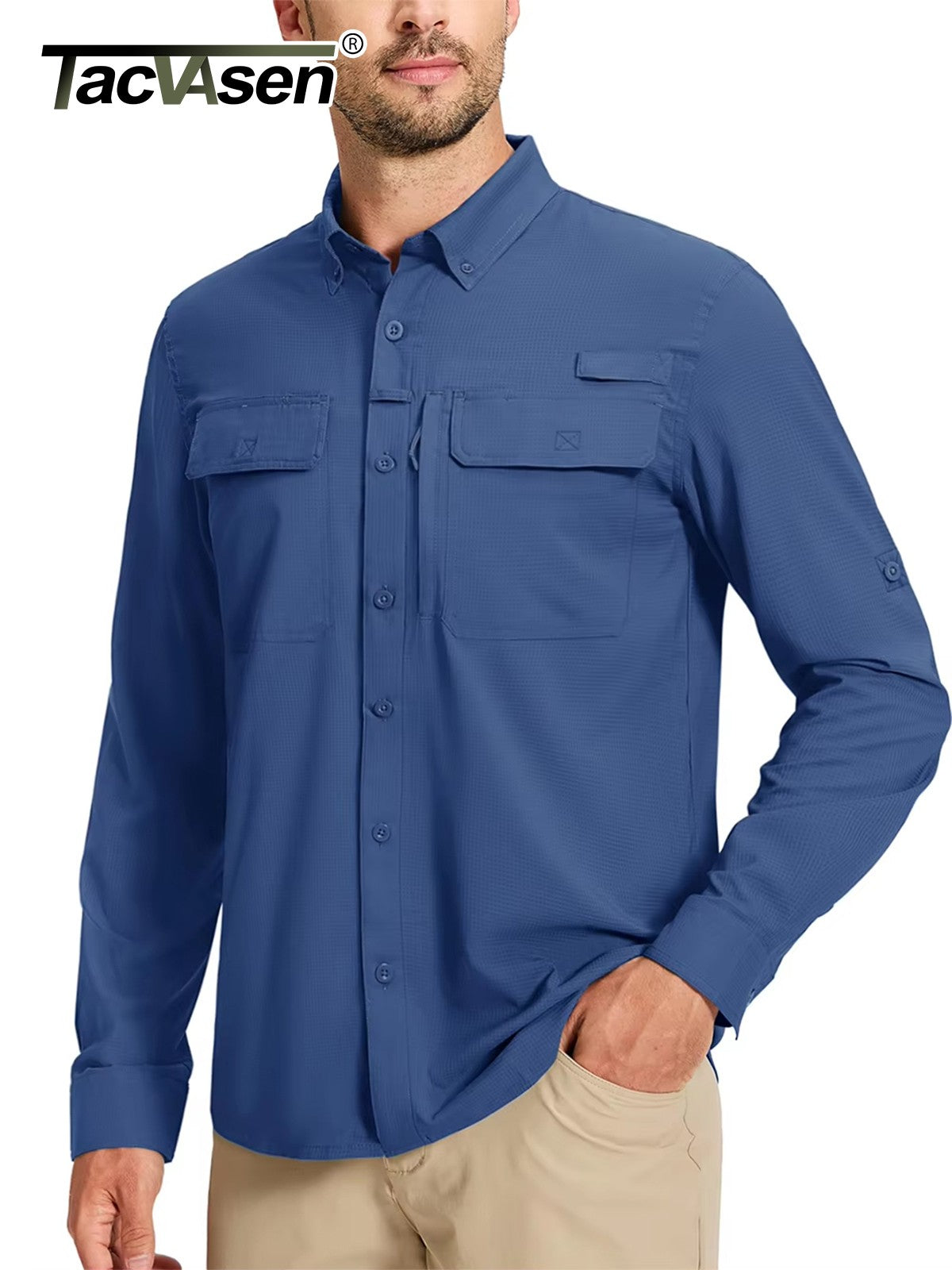 TACVASEN UV Block Fishing Shirts Mens Sun Protection Quick Dry Long Sleeve Shirts Mesh Breathable Hiking Cargo Shirts Work Shirt