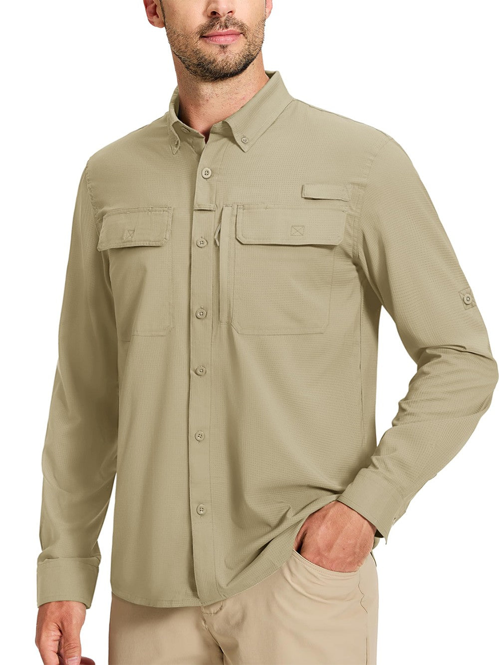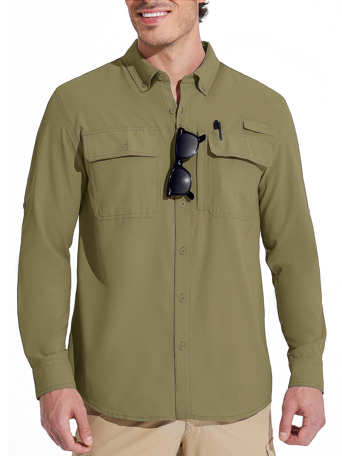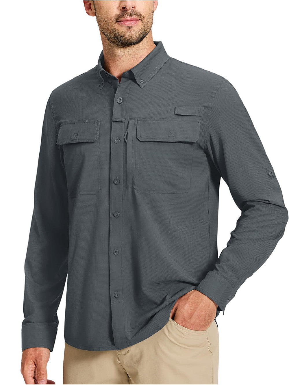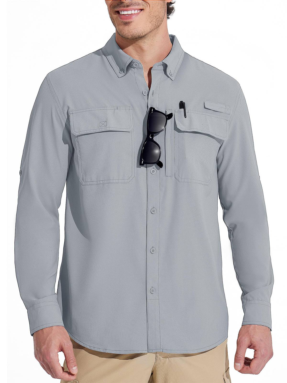 TACVASEN UV Block Fishing Shirts Mens Sun Protection Quick Dry Long Sleeve Shirts Mesh Breathable Hiking Cargo Shirts Work Shirt