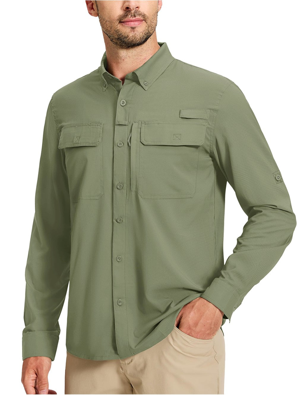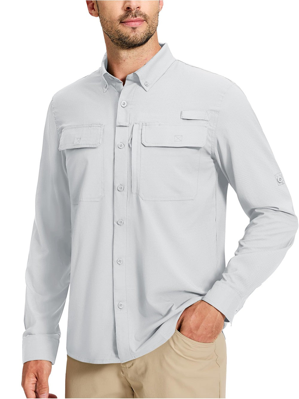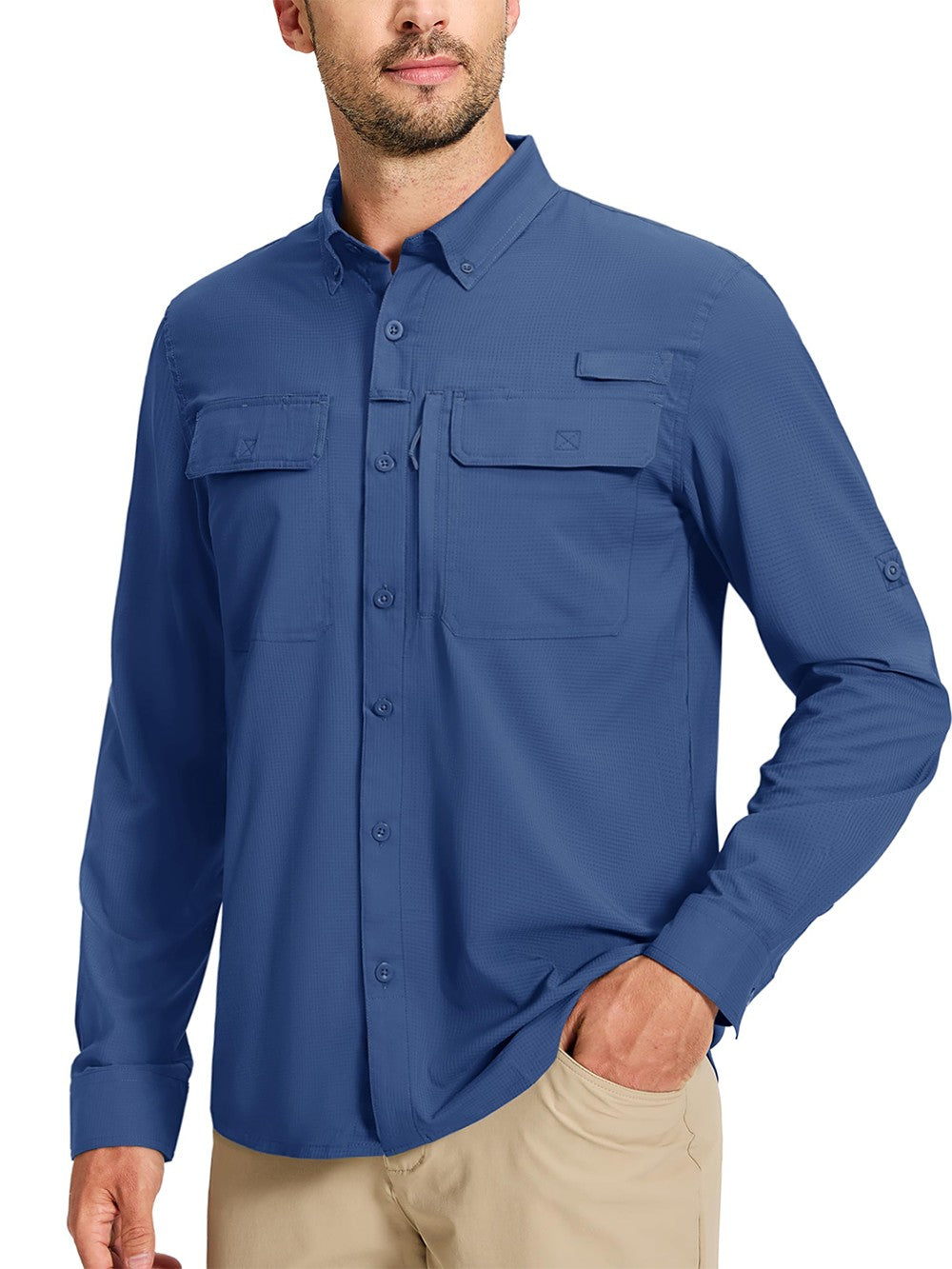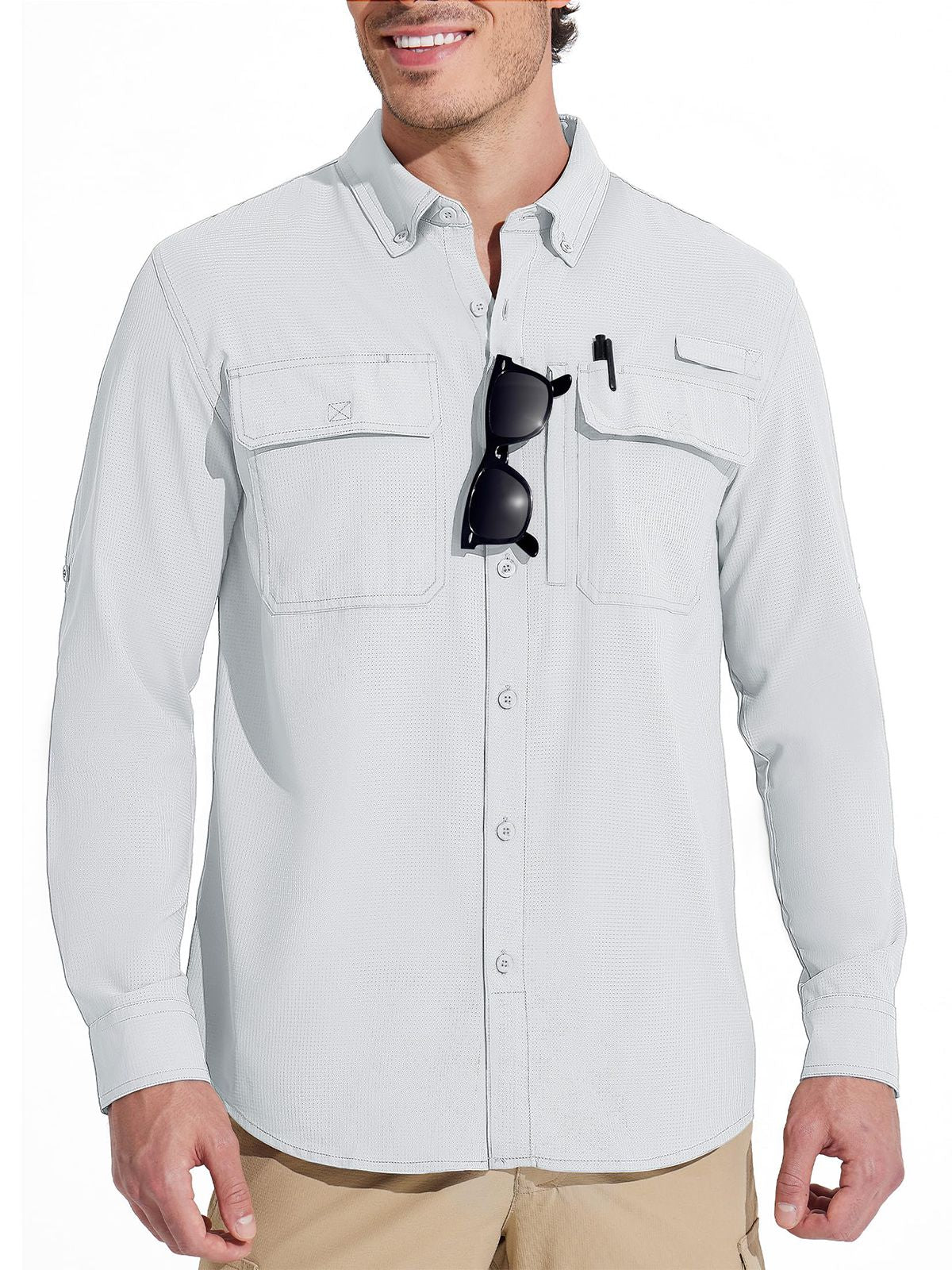 TACVASEN UV Block Fishing Shirts Mens Sun Protection Quick Dry Long Sleeve Shirts Mesh Breathable Hiking Cargo Shirts Work Shirt