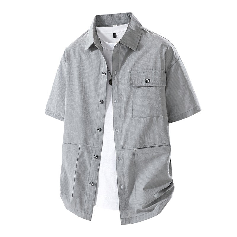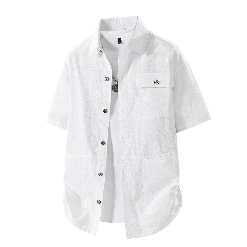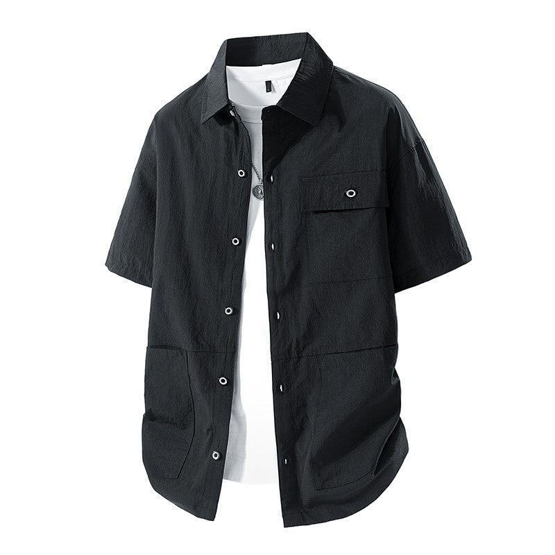 New Summer Men's Short Shirt Korean Casual Oversized Navy Blue Cargo Shirt Classic Retro Men Clothing Outdoor Sports Durable Top