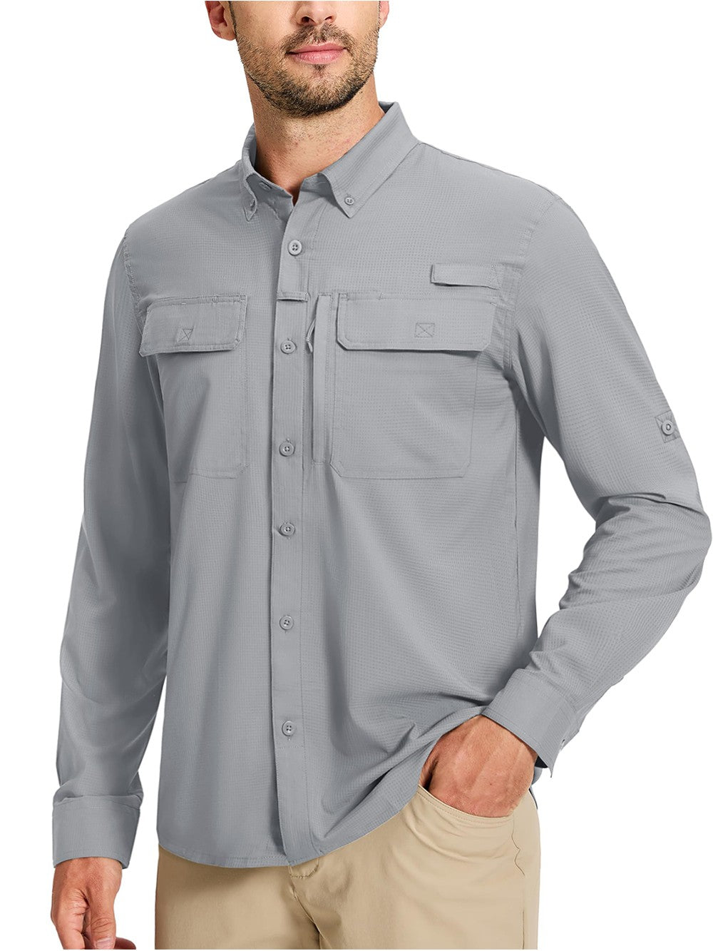 MAGCOMSEN Sun Protection Shirt Quick Dry Long Sleeve Mesh Breathable Shirt Multi Pockets Fishing Shirts Hiking Work Cargo Shirts