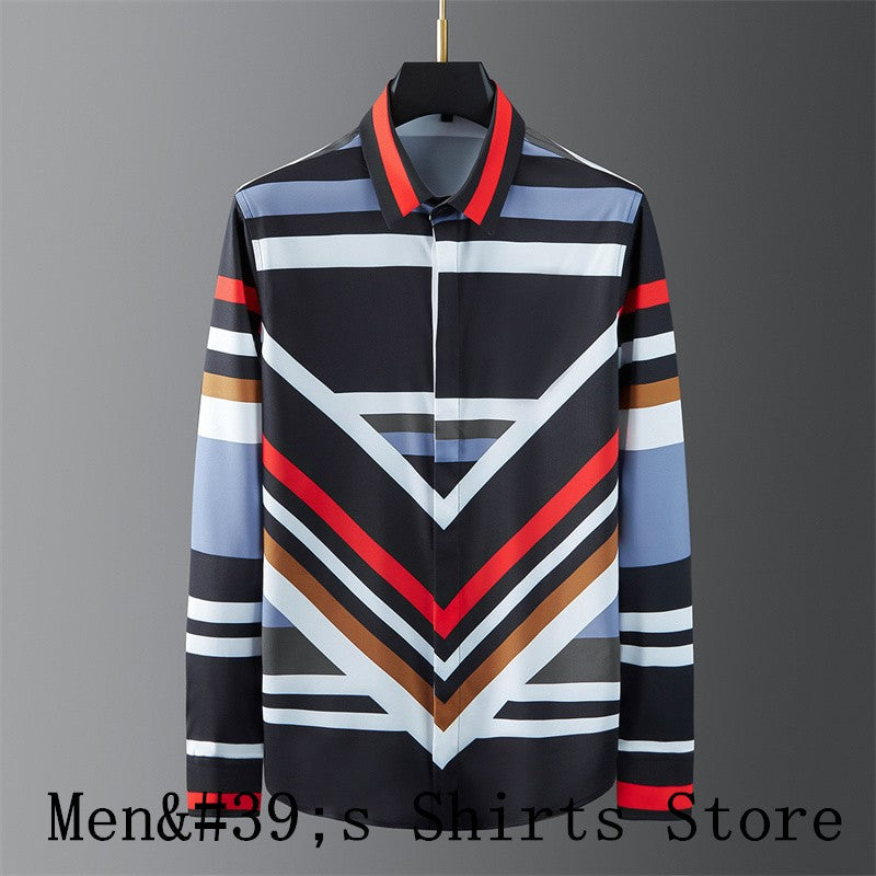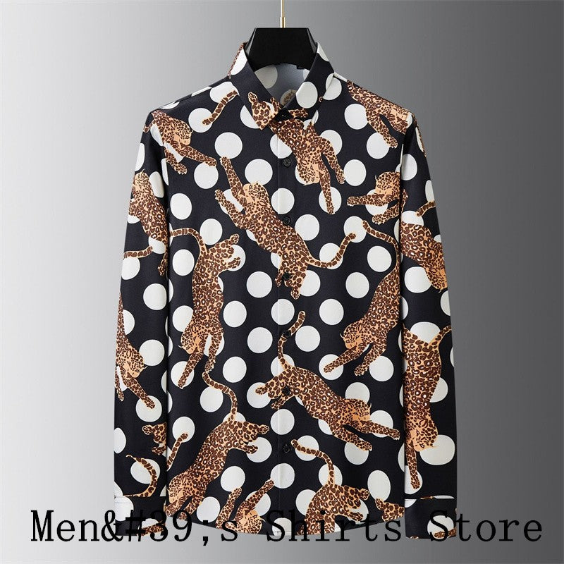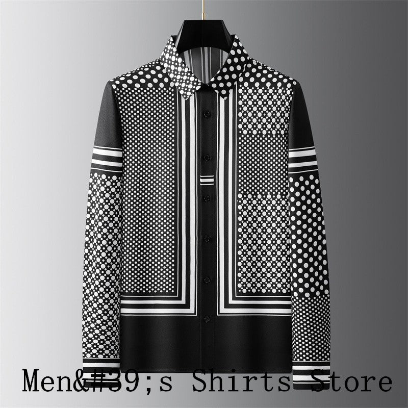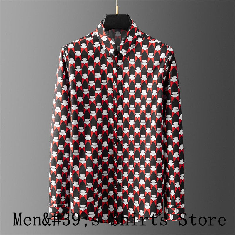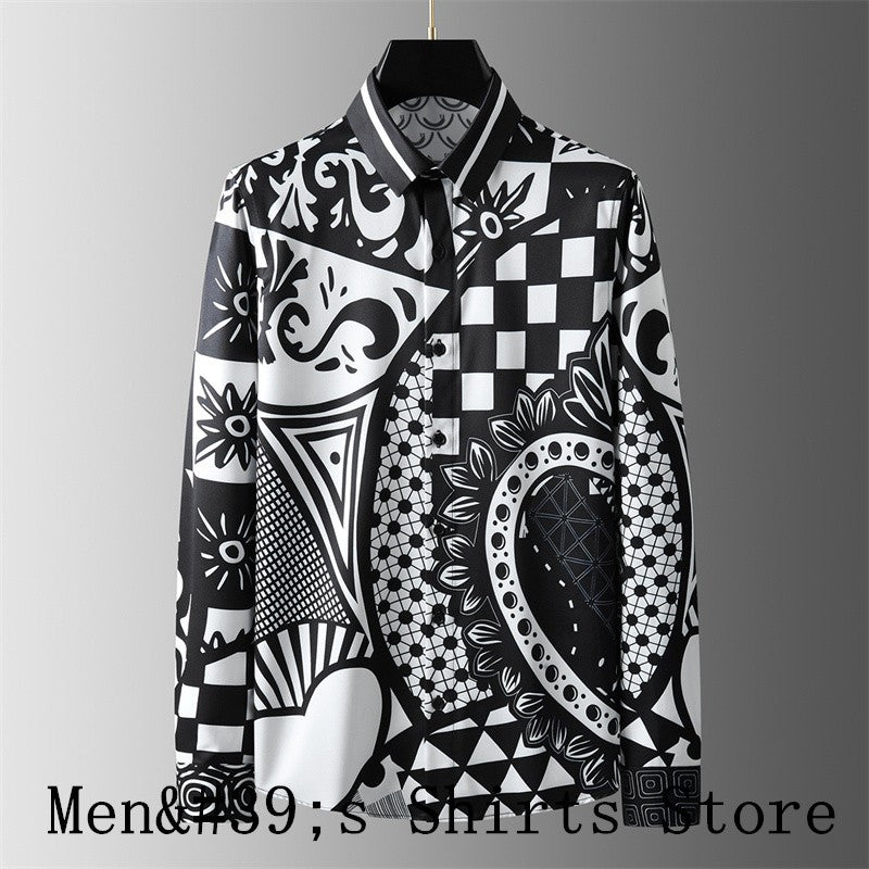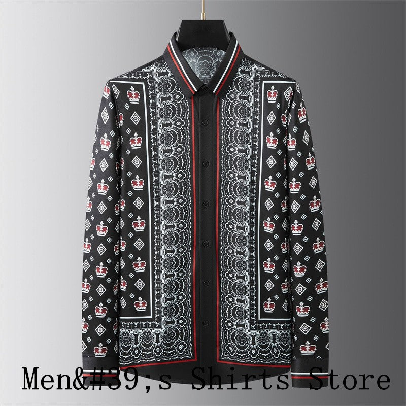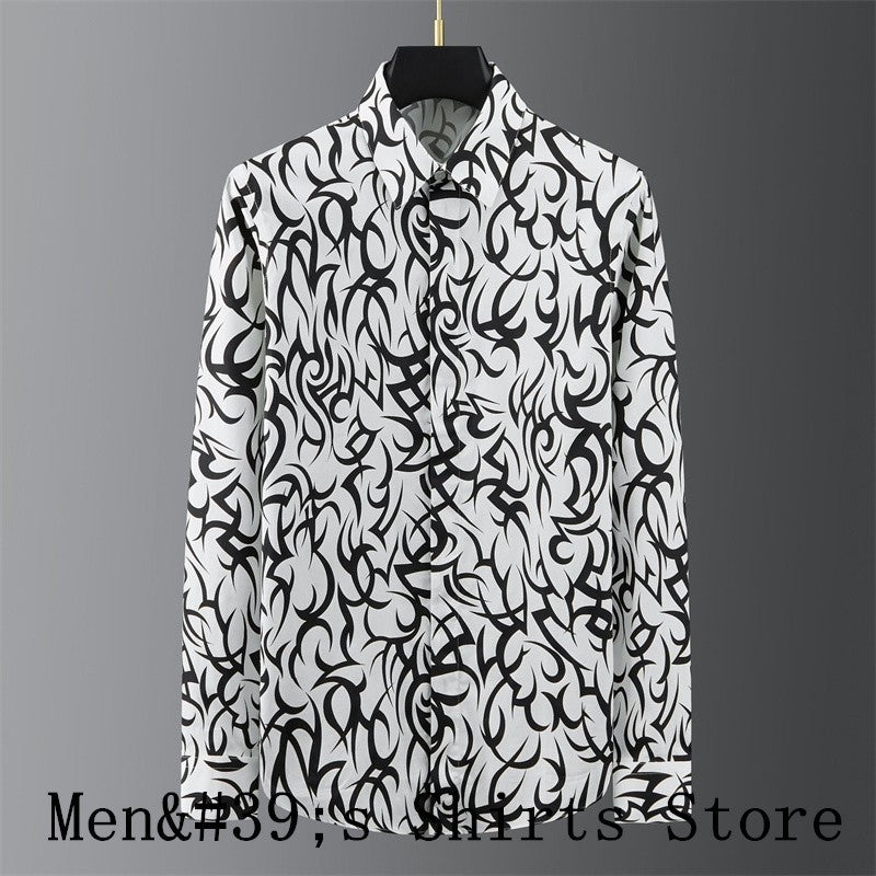 Plus Size XS-6XL Men's Brand Shirt Vintage Print Long CCS Shirt New Fashion Slim Social Baroque Slim Party Shirt