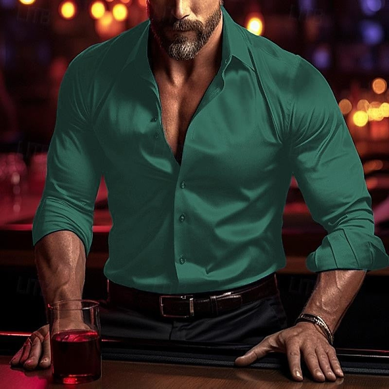 Men's Shirt High Quality Soft Fabric Solid Color Wedding Holiday Black White Burgundy Blue Long Sleeve Lapel Shirt 6XL Clothing