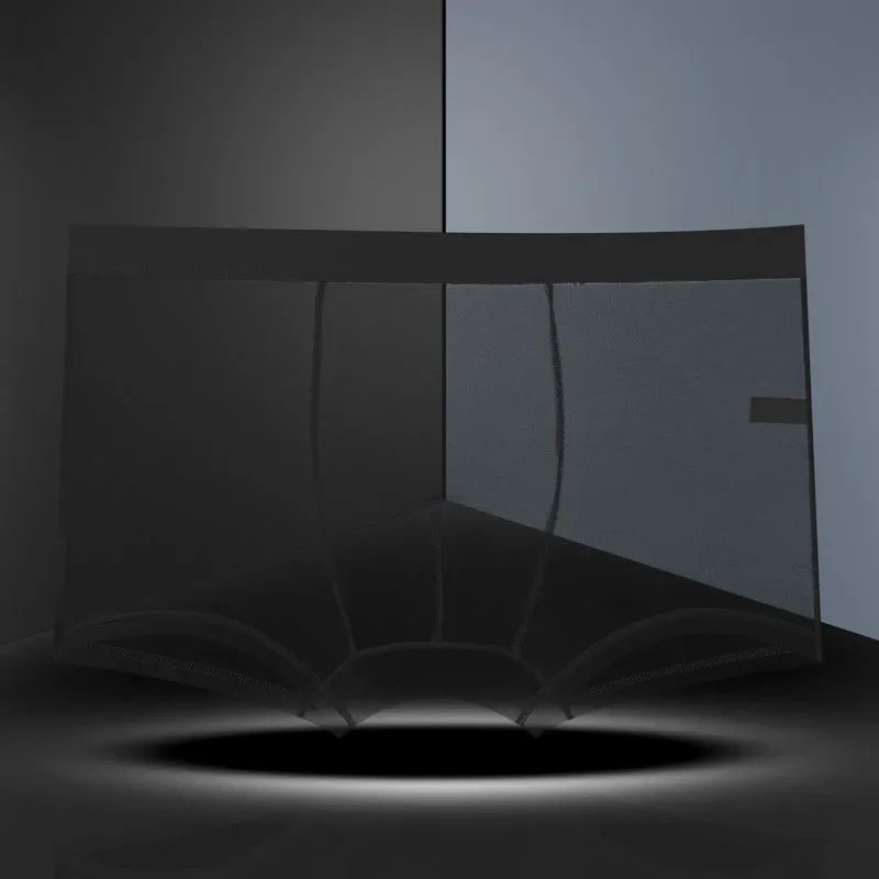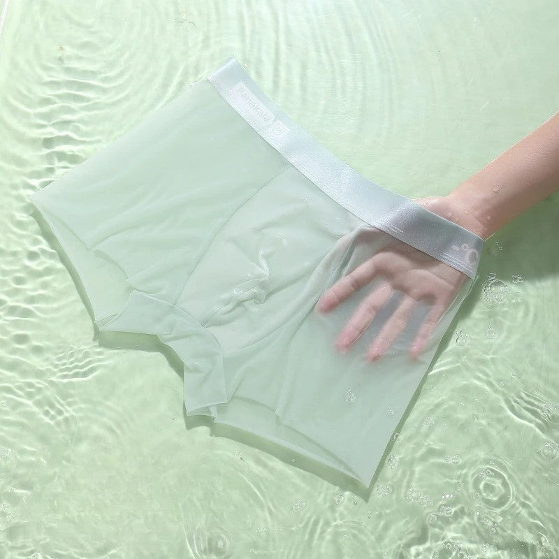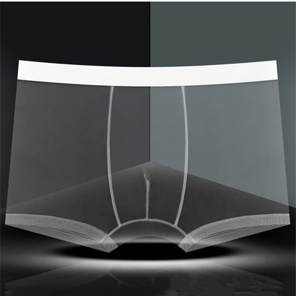 Men Transparent Boxers Bulge Ice Silk See Through Underpants Sexy Mid Waist Panties Lingerie Intimates