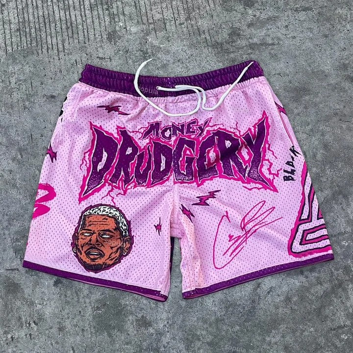 Vintage Casual Fun Pattern Graphics Shorts Loose Basketball Sport Gym Breathable Shorts Fitness Training Workout Male Shorts