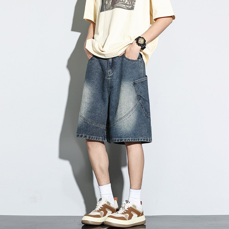 Summer New Baggy Denim Shorts Fashion Casual Straight Harajuku Jeans Male Vintage Wash Drawstring Short Pants Streetwear