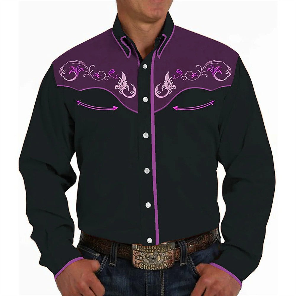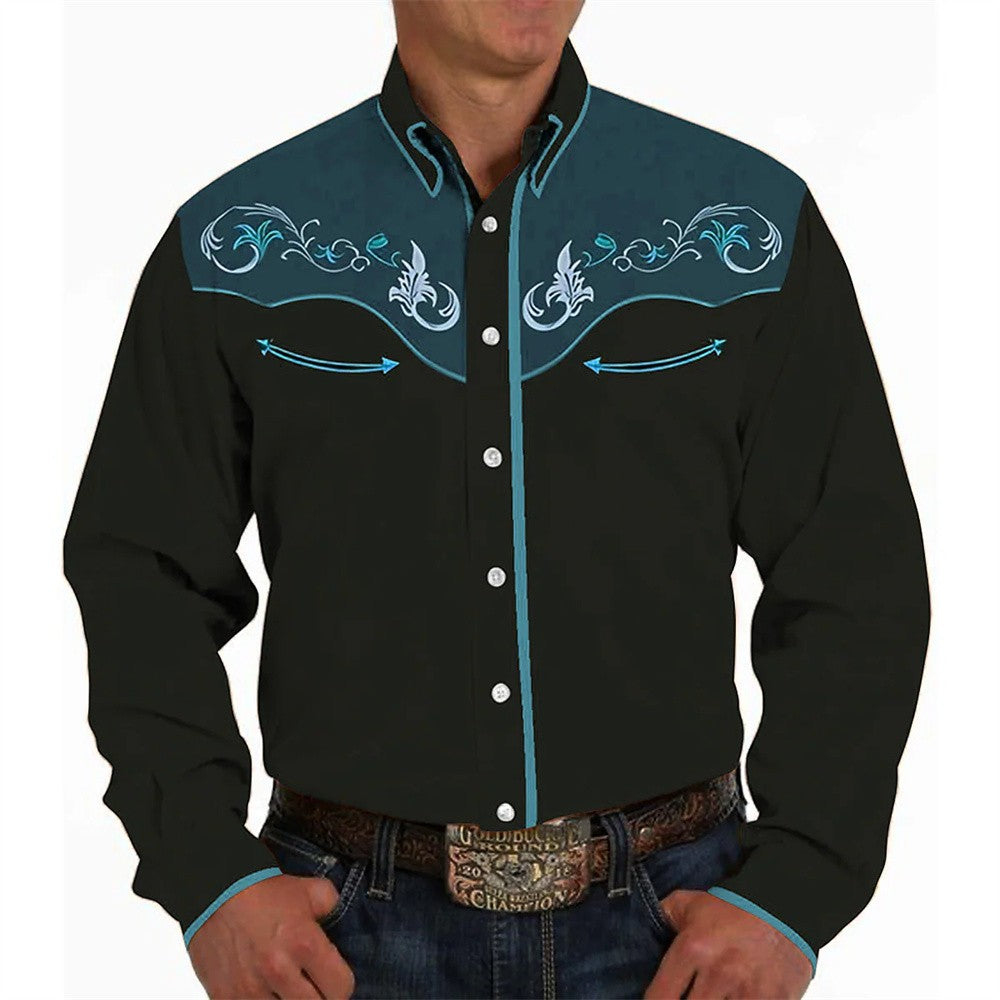 Mens Long Sleeve Shirt Western Cowboy Denim Hawaiian Shirts Vintage comfortable and soft Social Shirt Man Beach Blouse Plus Size