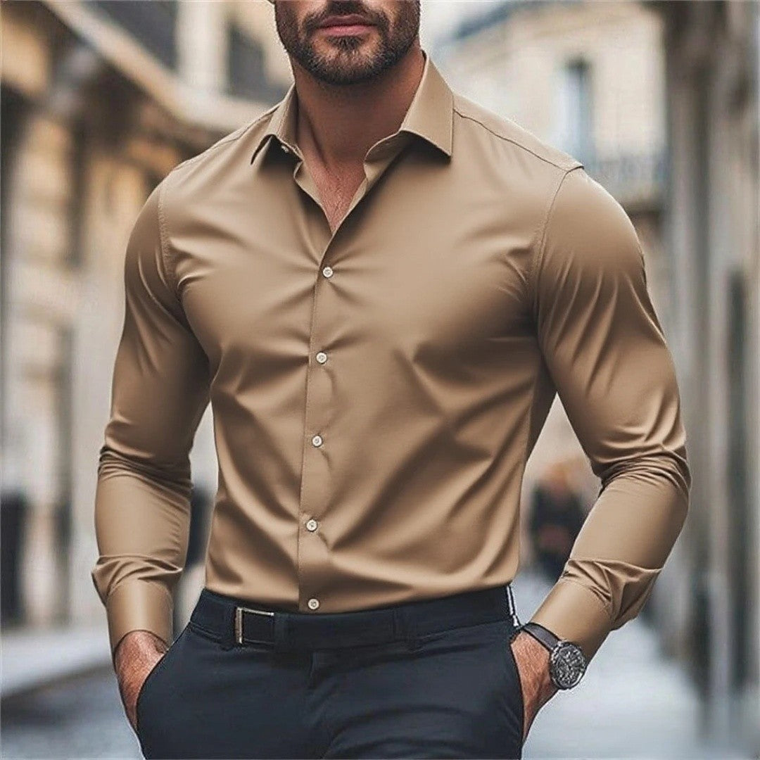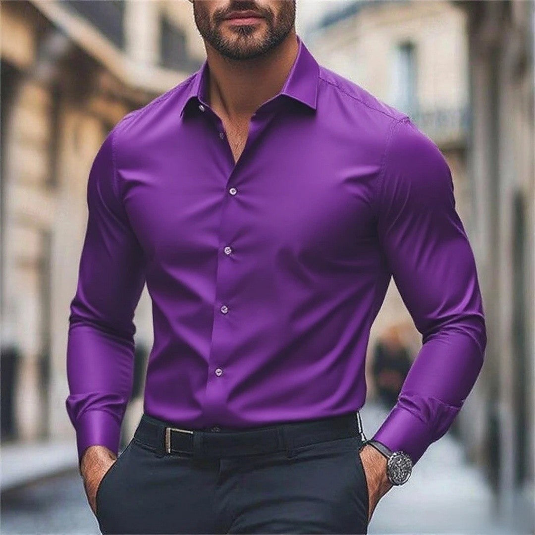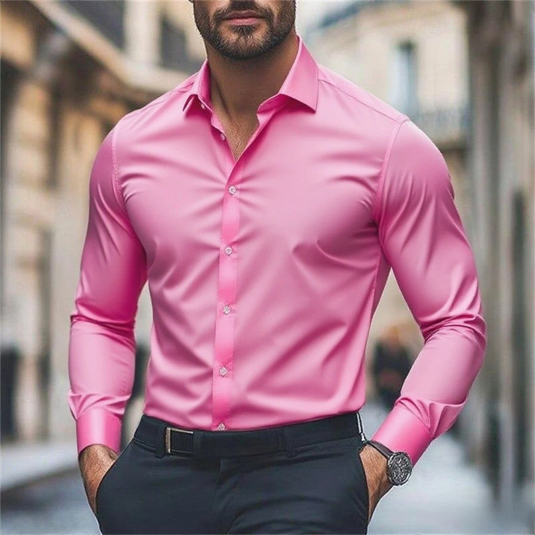 New men's shirt, brand new and genuine, uniform color, long sleeves, elastic fabric, multiple colors available for selection, su