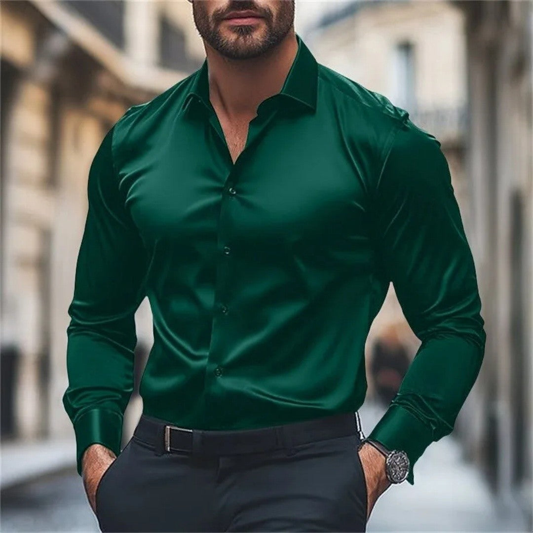 New Arrival 2025 Spring Men's Long Sleeve Shirts | Fashionable Single-Breasted Cotton Shirt in Blue Green Khaki Grey | Available