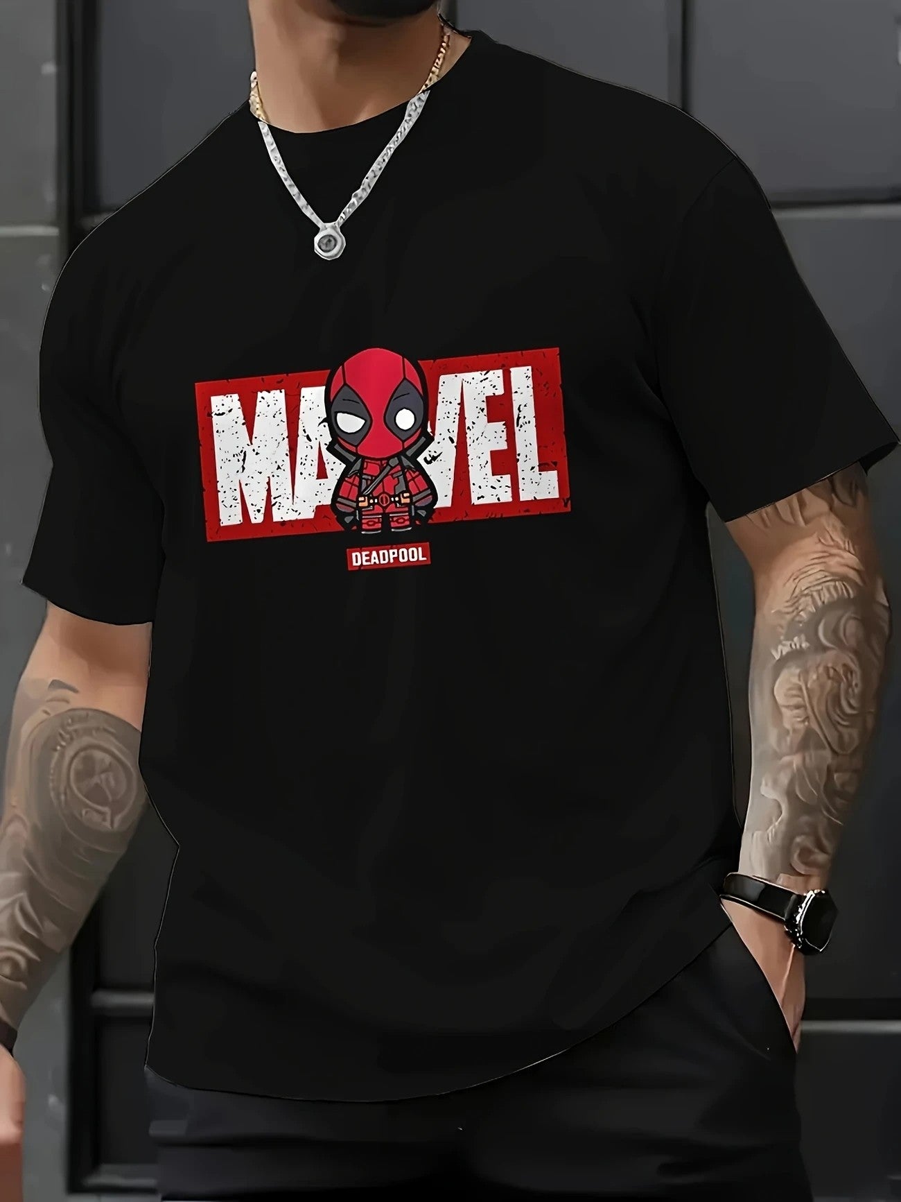 Spider-Man Deadpool Graphic Men's T-Shirt Black Loose Fit Casual Summer Cotton Women Couple Tops Tees Trendy Oversized Unisex