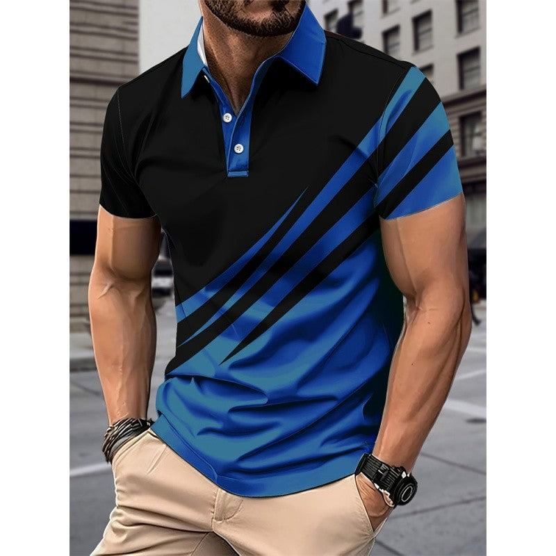 Colorful 3D Printed Stripes Polo Shirt For Men Geometry Pattern Short Sleeve Tees Summer Casual Lapel Tops Oversized T-Shirts