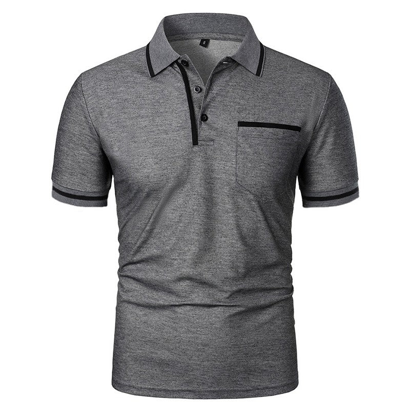 New Men's Short Sleeve Polo Shirts Solid Color Casual T-shirt Summer Trendy Breathable Loose Basic Splice Top Pockets Men Shirts