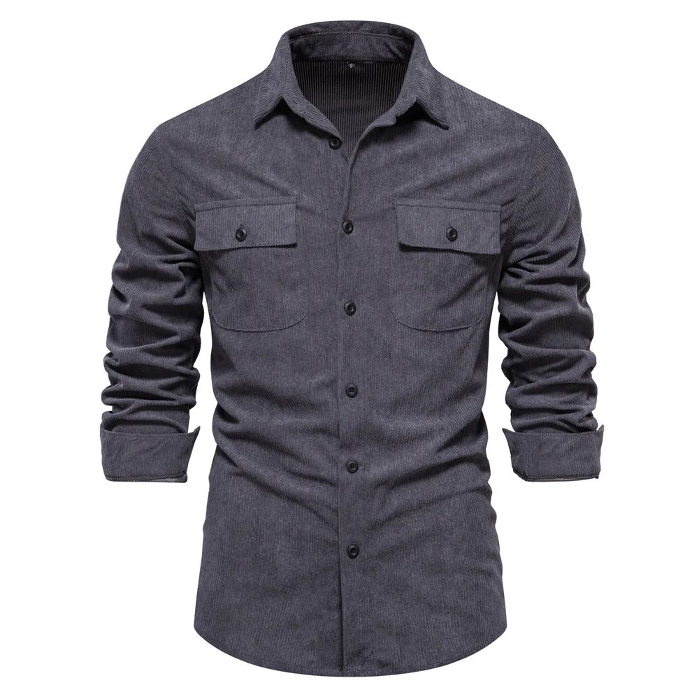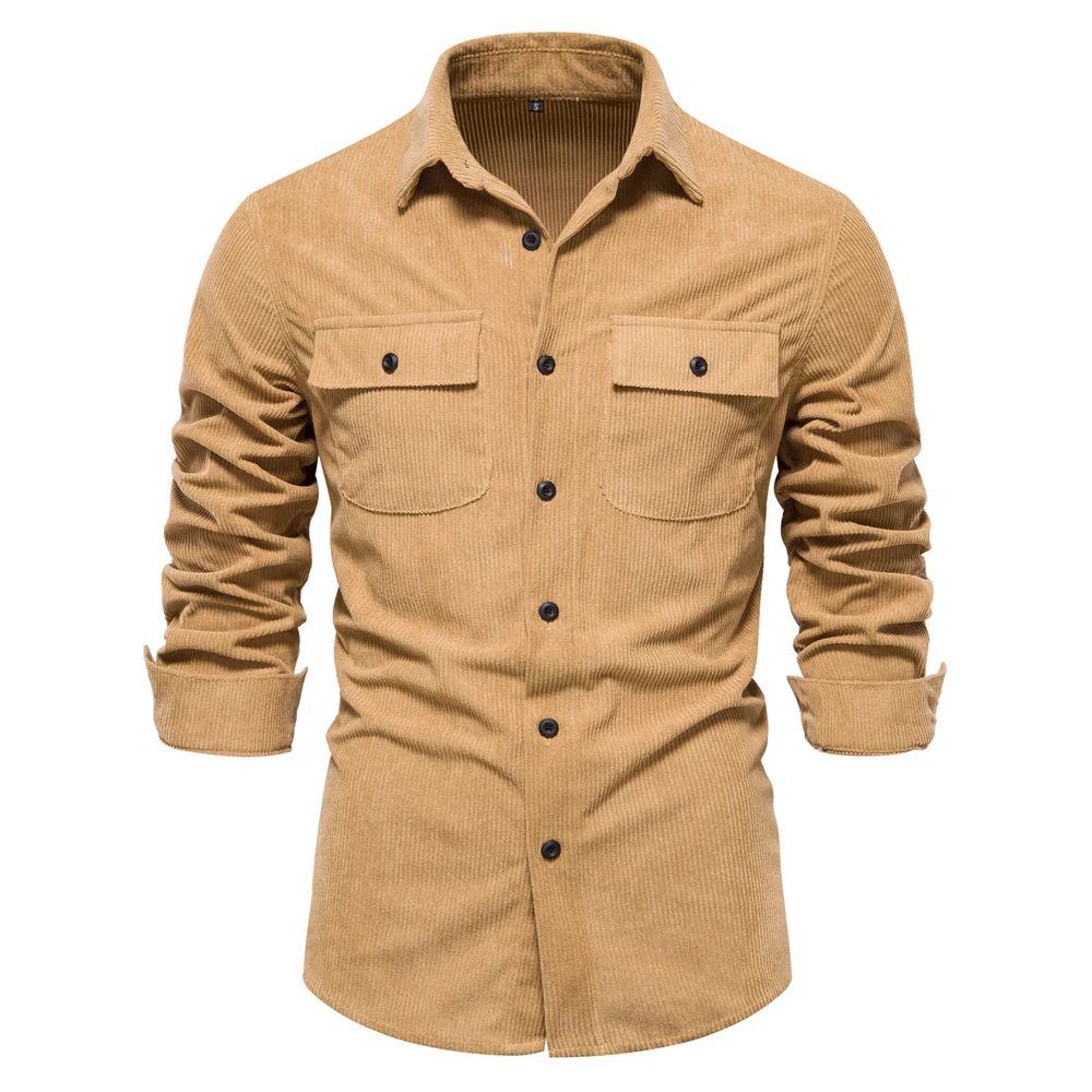 AIOPESON 2023 New Solid Color Shirt Corduroy Shirt for Men Business Casual Pocket Men's Shirt Thicken Autumn Men Shirt