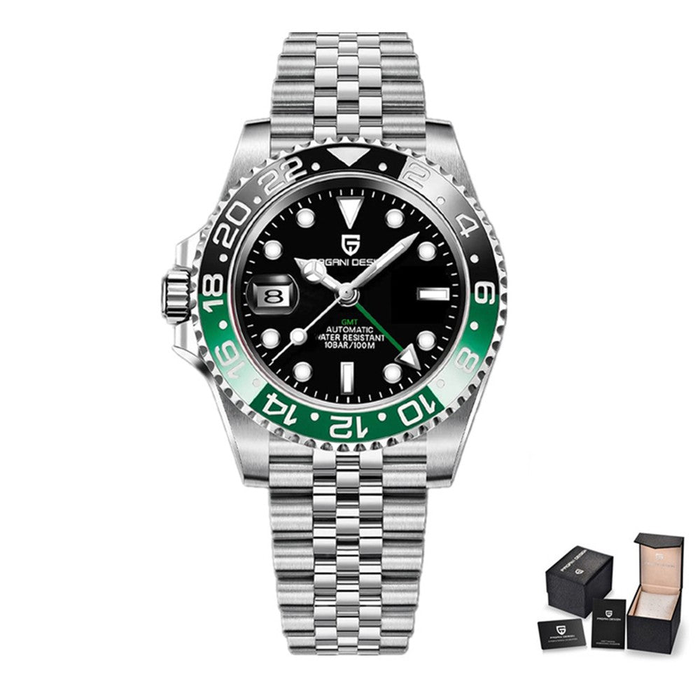 PAGANI DESIGN PD-1662 Luxury GMT Men Mechanical Wristwatch Sapphire Glass Stainless Steel 100M Waterproof Automatic Watches