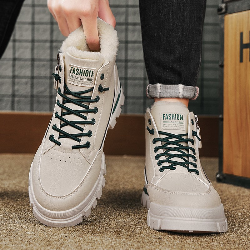 New winter plush thick warm men's cotton shoes trendy outdoor high top male snow boots