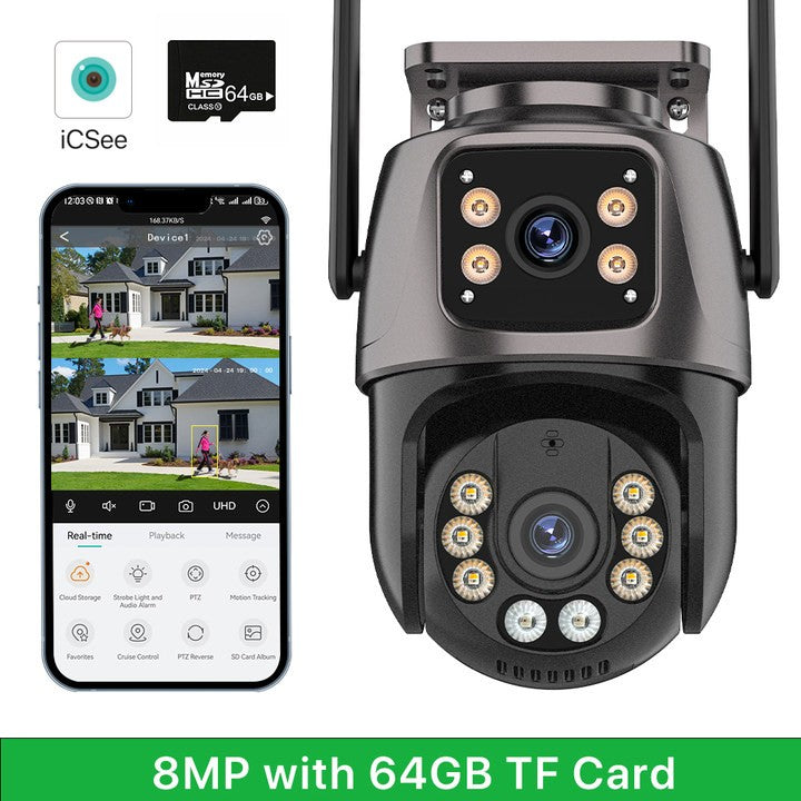 Dual Lens 360º Wifi Camera IP66 Security Protection 8MP 4K Wireless Outdoor Human Detection ICSEE Video Surveillance PTZ Camera