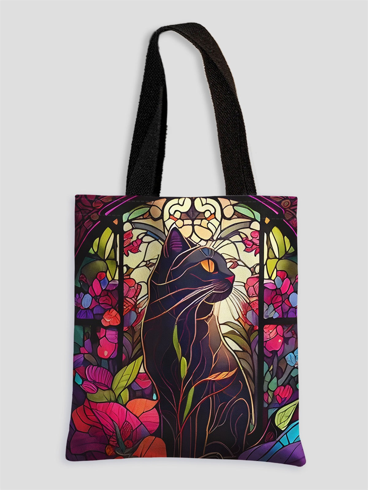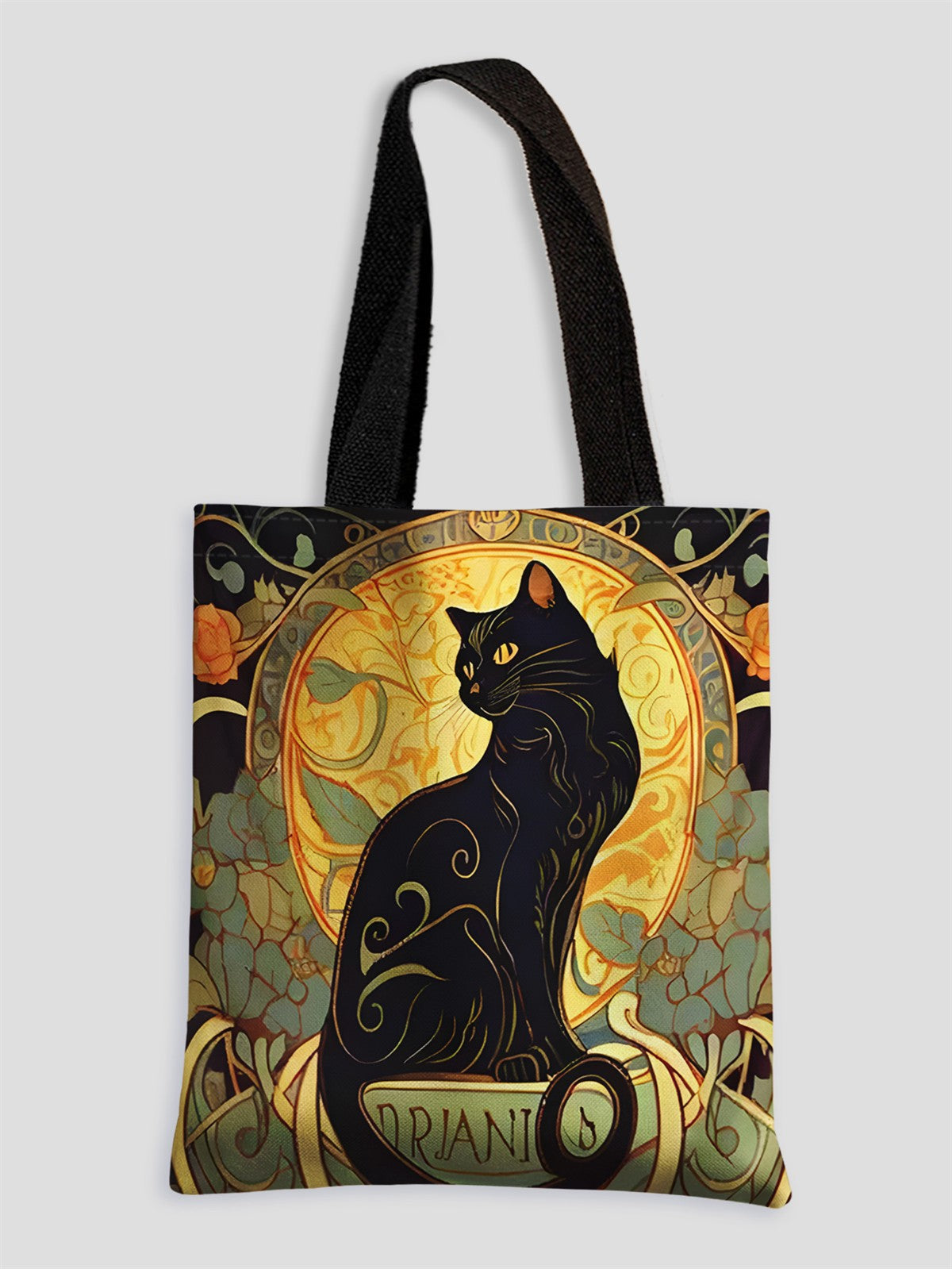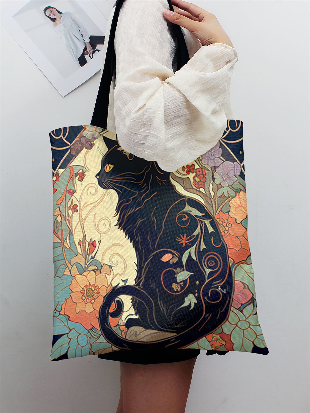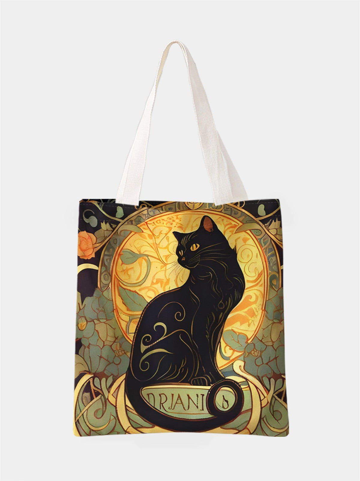 Black cat pattern printed casual handbag, reusable fashionable backpack, multifunctional handbag, canvas shopping bag