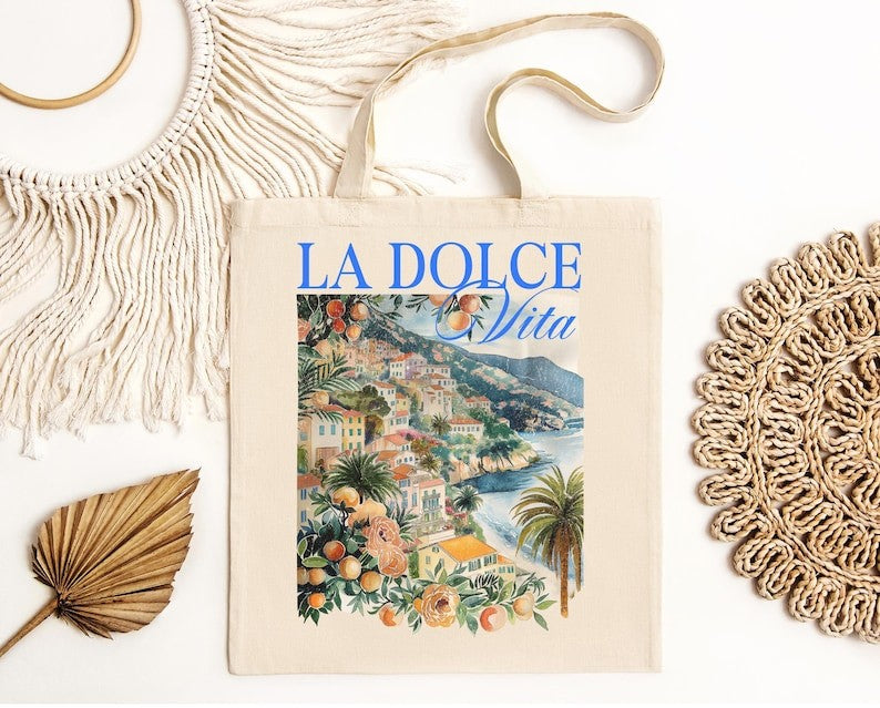 Vintage Italian Art Tote Bag La Dolce Vita Canvas Bag Italian Style Vintage Canvas Tote Shoulder Shopper Bag Gift for Travelers