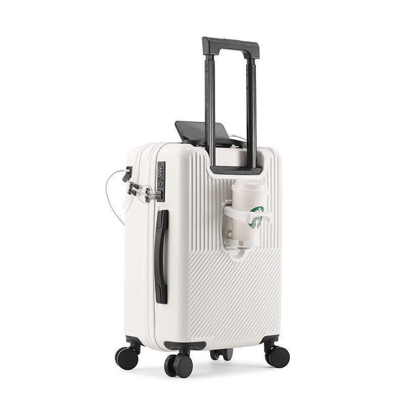 Aluminium Frame Suitcase Front Opening Cabin Luggage with USB Cup Holder Female Trolley Case Male Brake Wheel Travel Suitcase