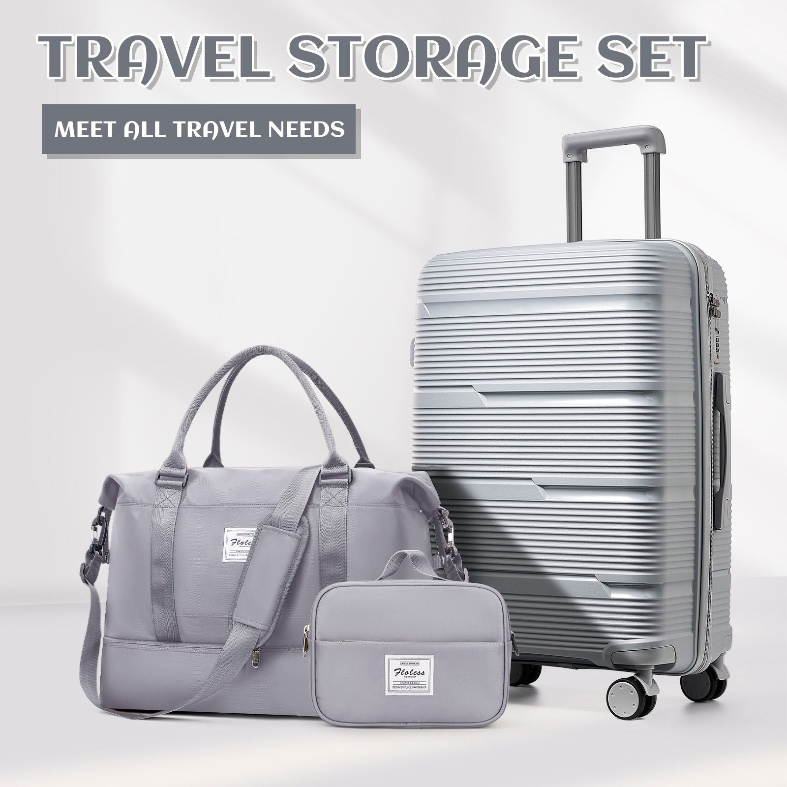 3pcs Large Travel Suitcase Sets With Travel Bag, Checked Suitcases with Wheels, Carry On Luggage Sets, Travel Box Cabin 55x42x25