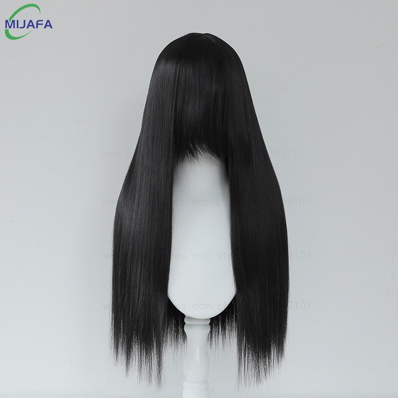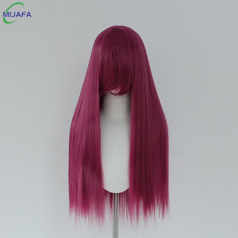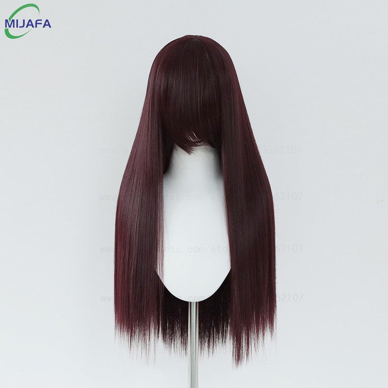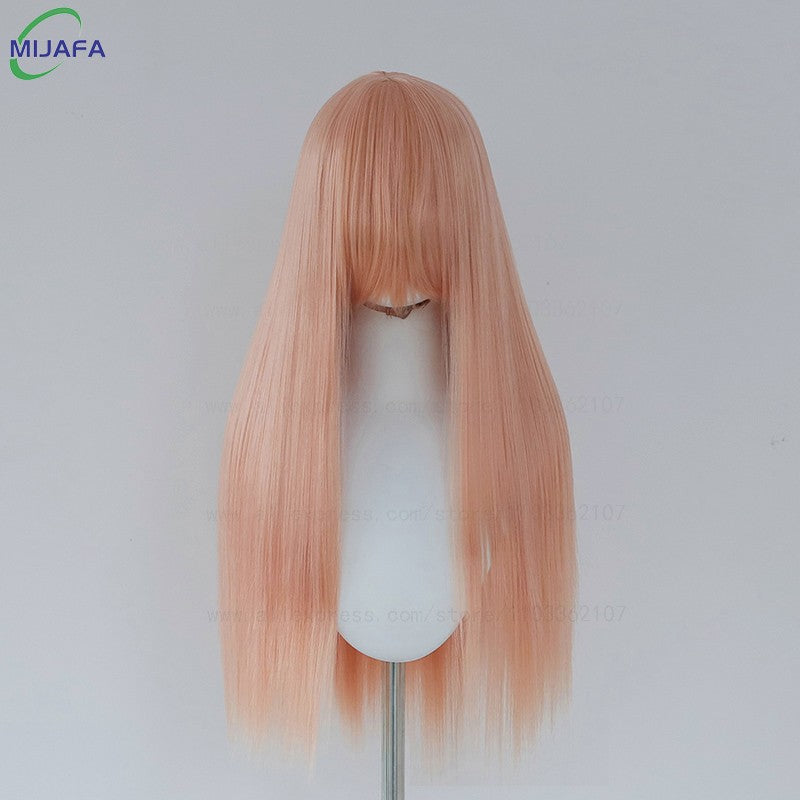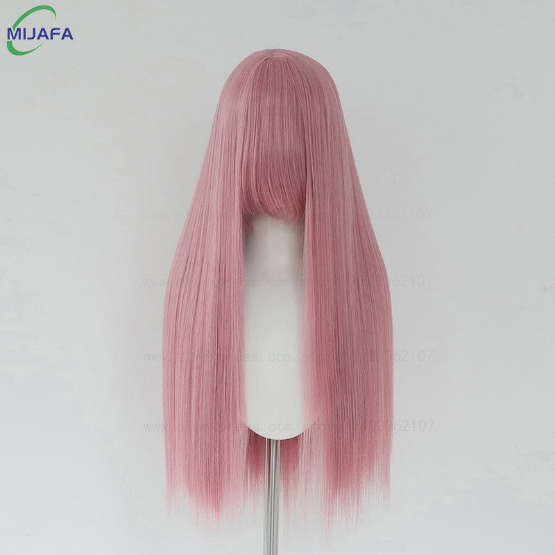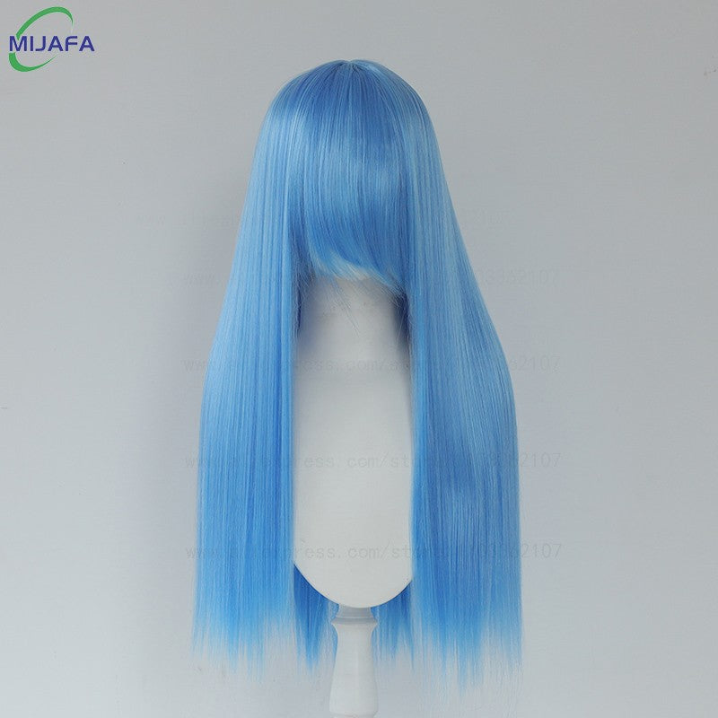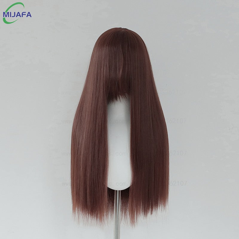 Very High Quality 400g 48 Colors 24Inch 60cm Long Straight Cosplay Wig With Bangs Heat Resistant Hair Anime Wigs + Wig Cap