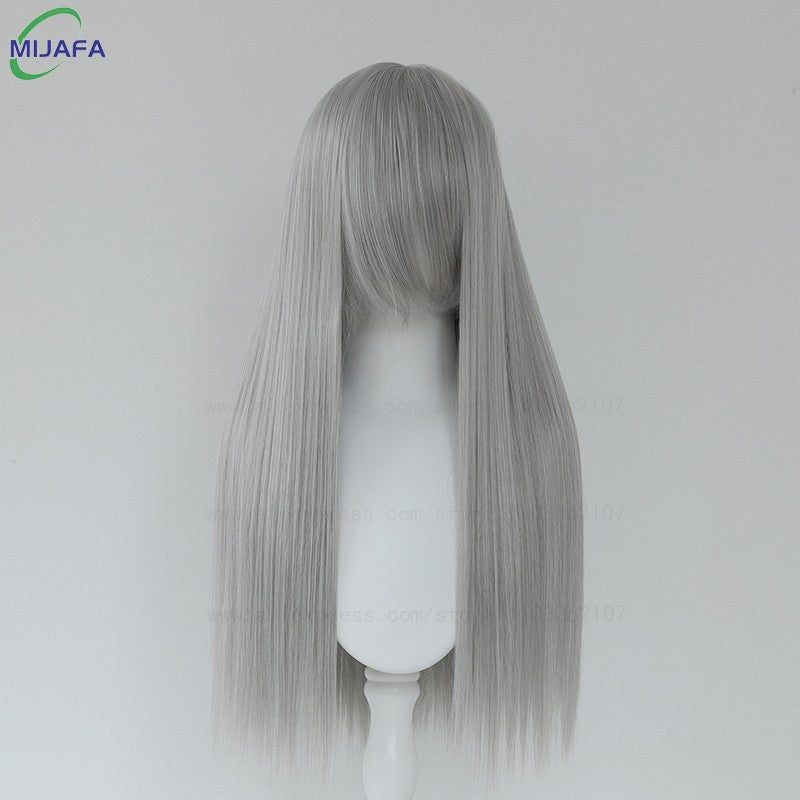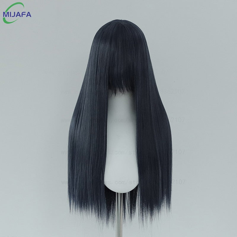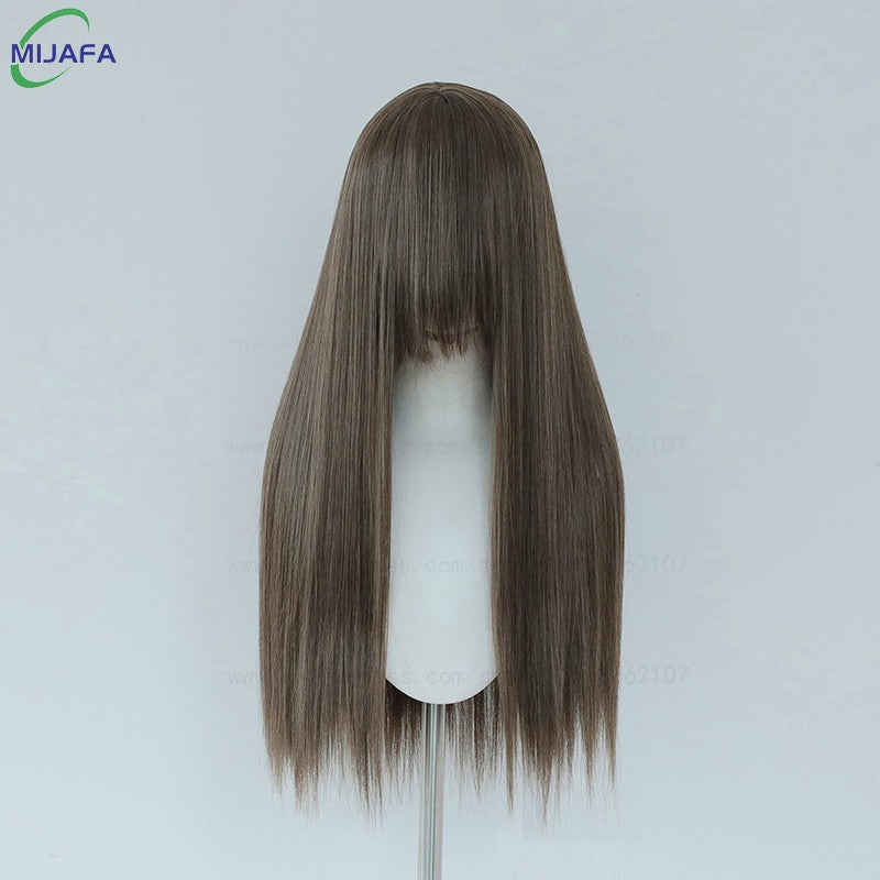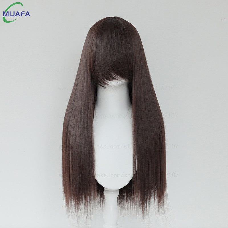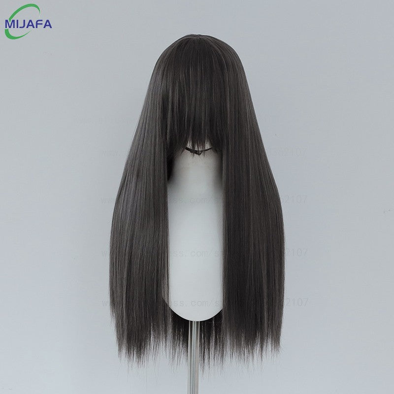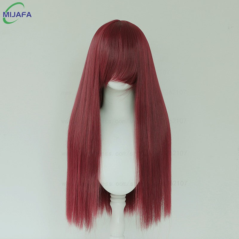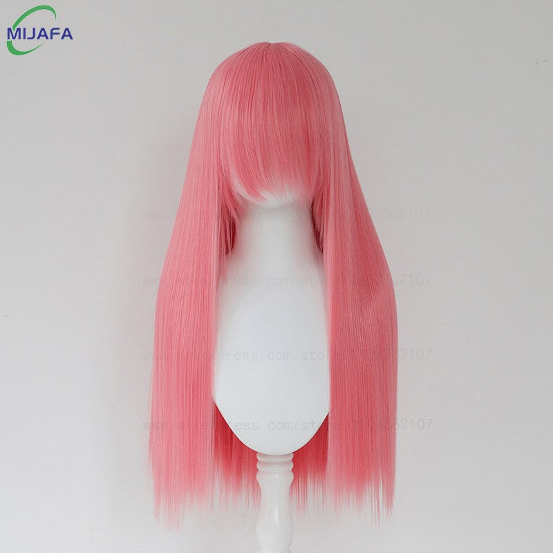 Very High Quality 400g 48 Colors 24Inch 60cm Long Straight Cosplay Wig With Bangs Heat Resistant Hair Anime Wigs + Wig Cap