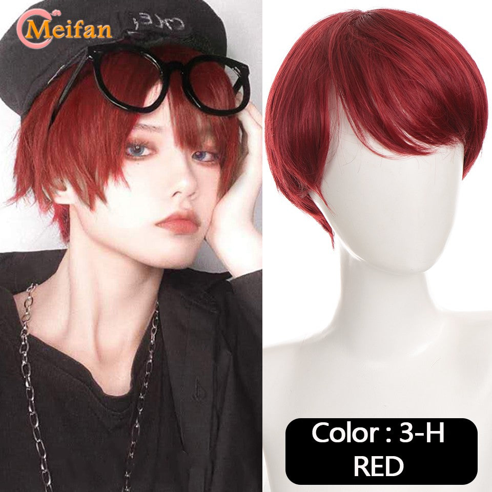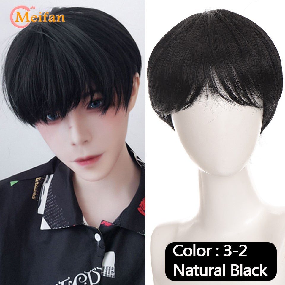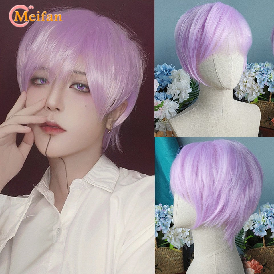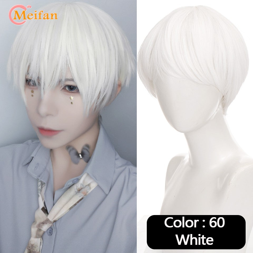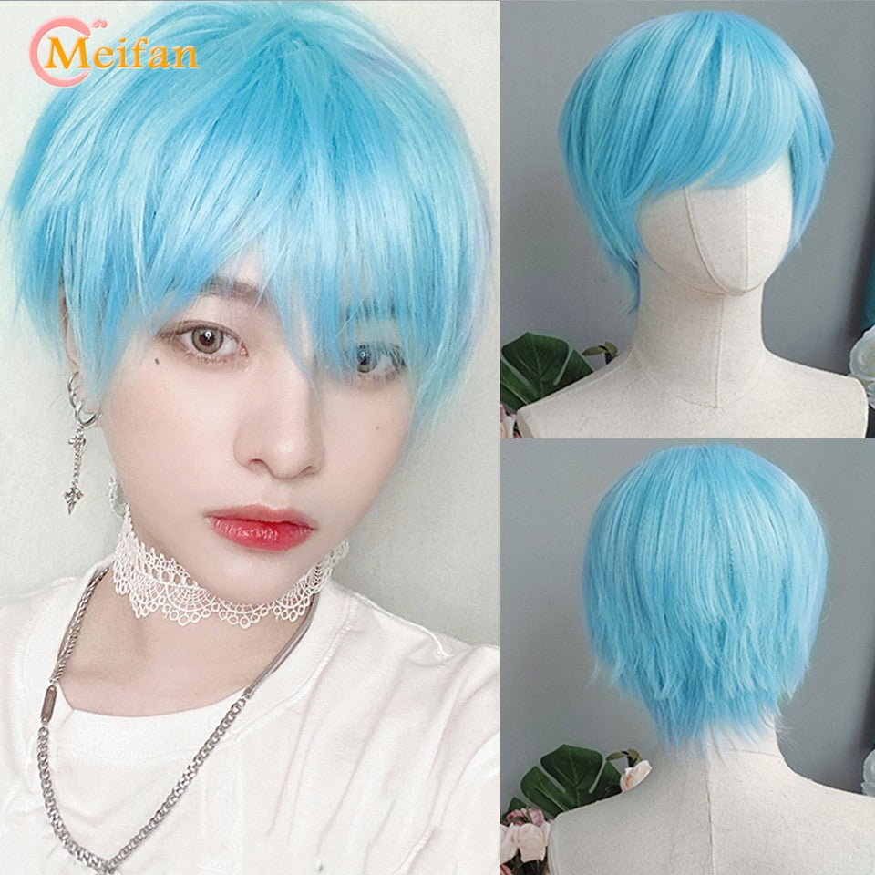 MEIFAN Synthetic Short Cosplay Lolita Anime Men Wig Male Straight Hair High Temperature Fiber Pink Blue Blonde Ombre Black Wig