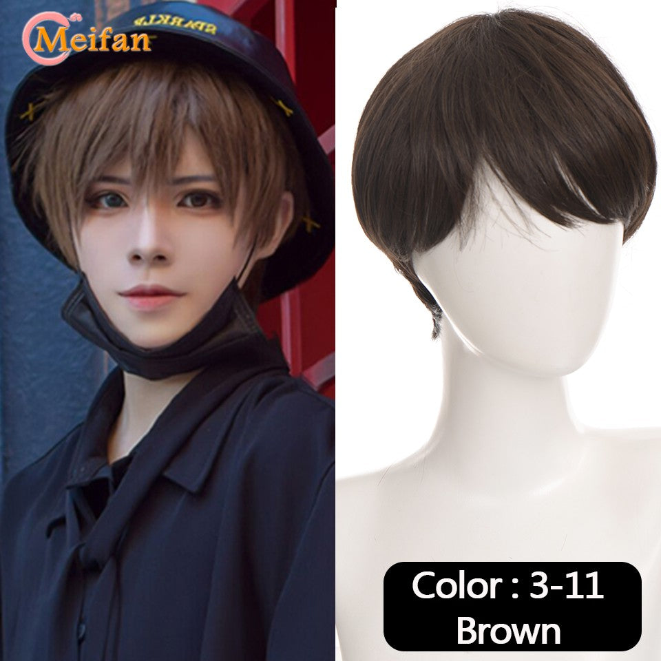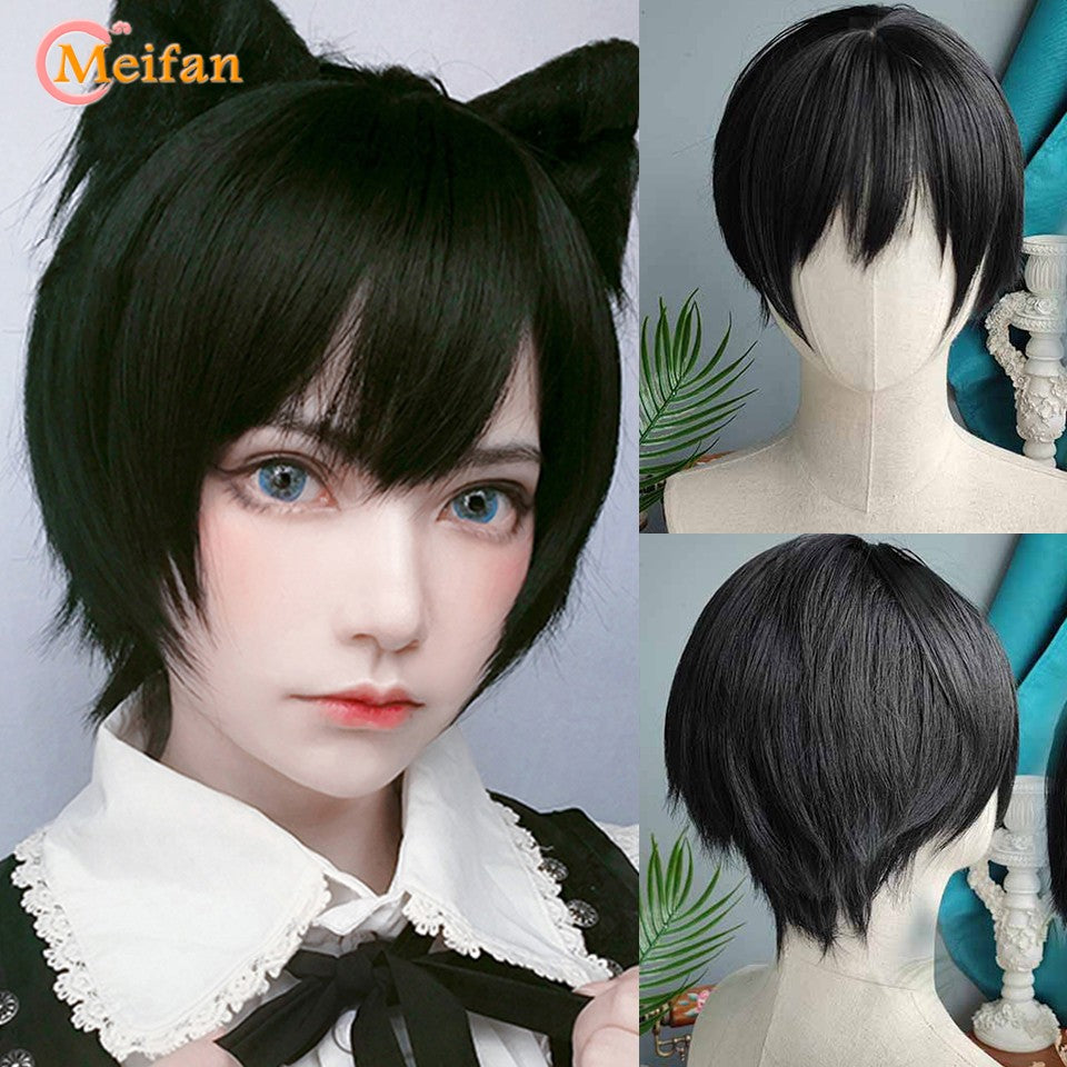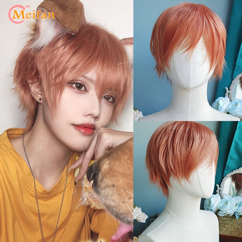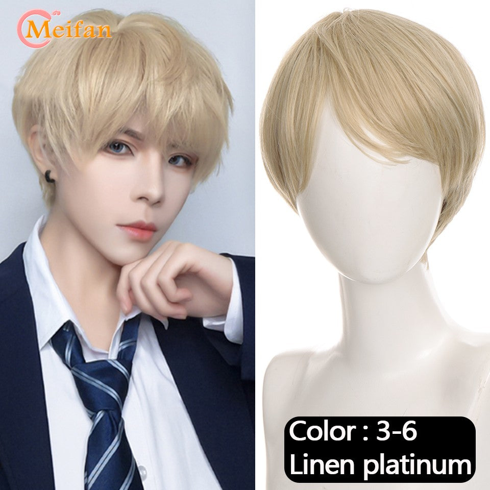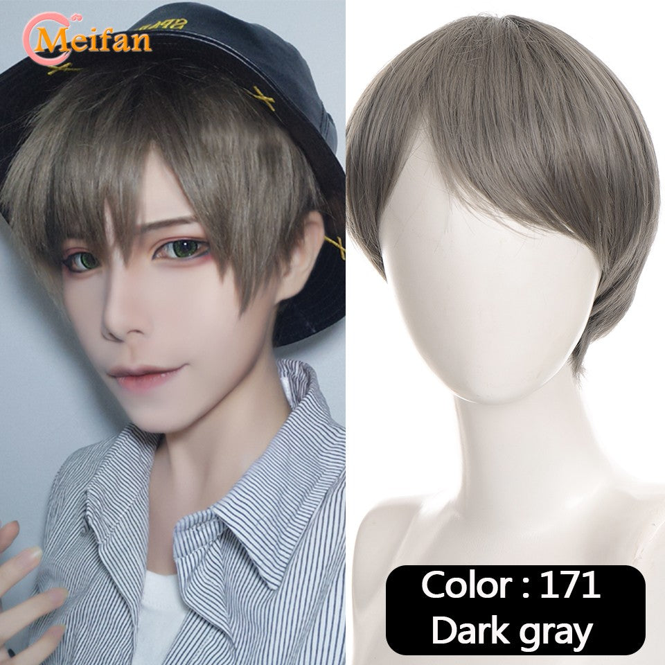 MEIFAN Synthetic Short Cosplay Lolita Anime Men Wig Male Straight Hair High Temperature Fiber Pink Blue Blonde Ombre Black Wig