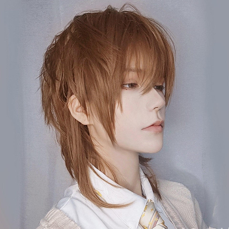 Synthetic Medium Length Fluffy Spiky Women Man Layered Straight Anime Cosplay Wig with Bangs for Halloween Party
