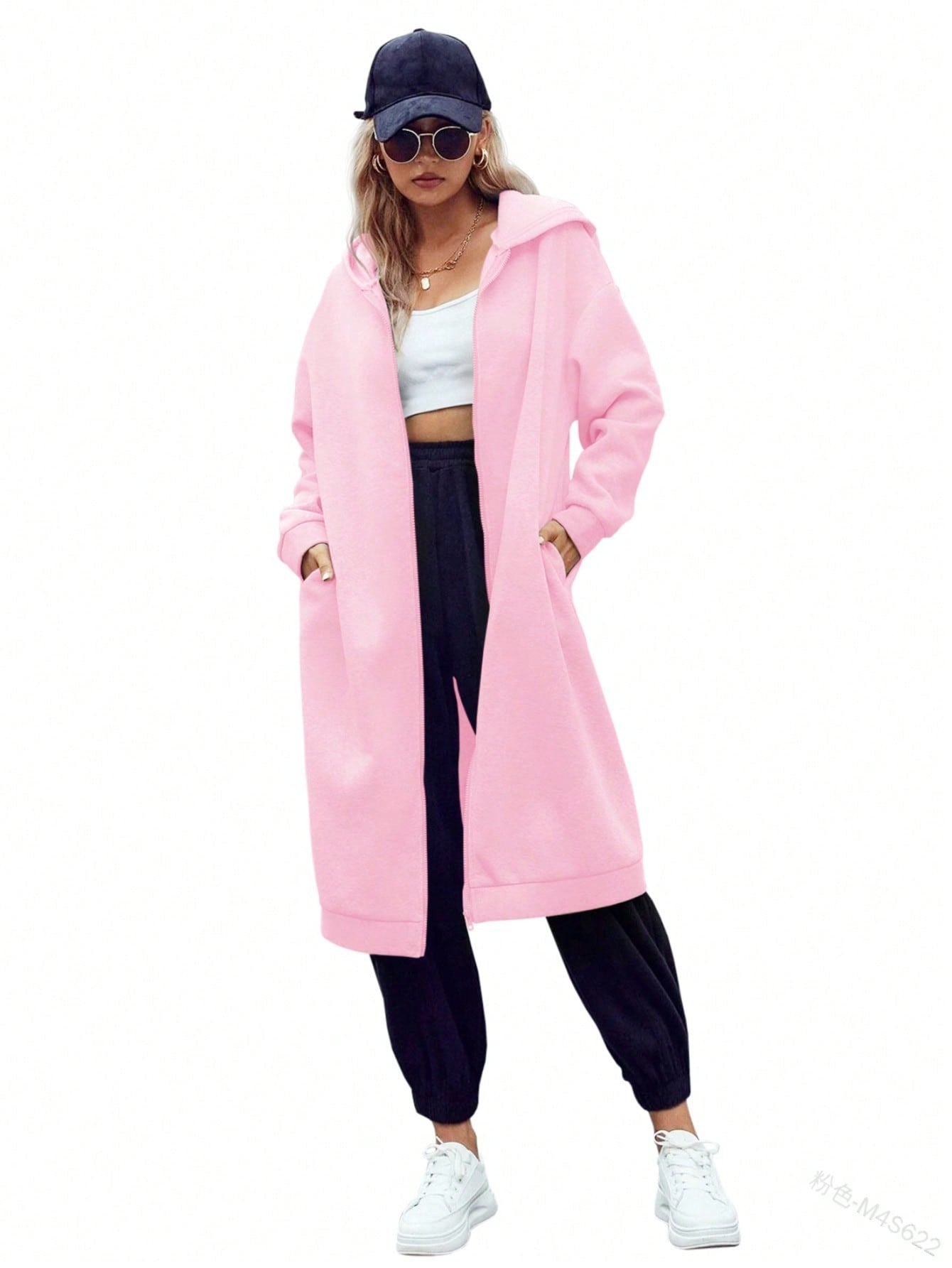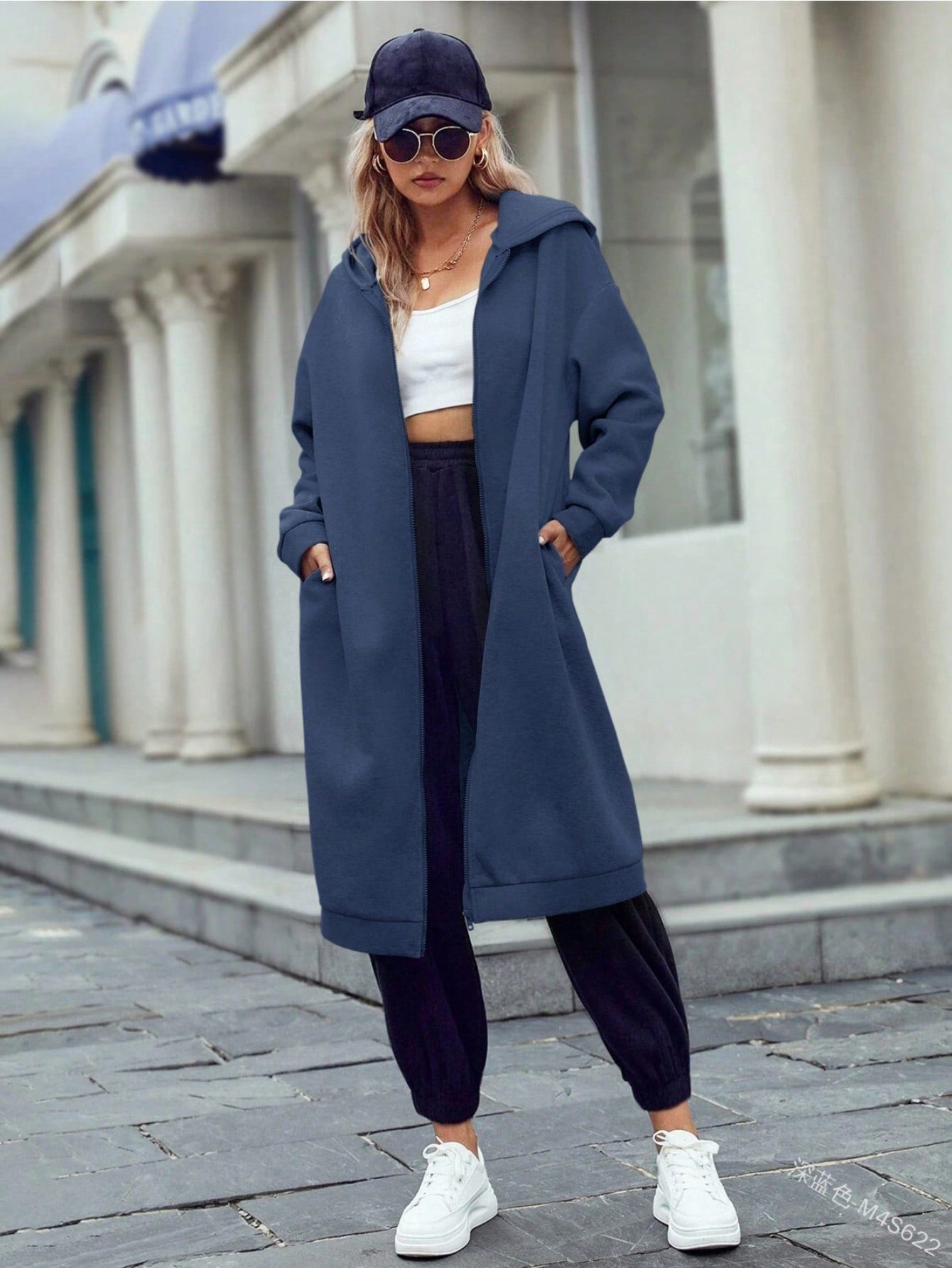 Fisoew lined Winter Coat Women Zip Up Hoodie Warm Long Tunic Sweatshirt With Pockets Outdoor Streetwear Jacket
