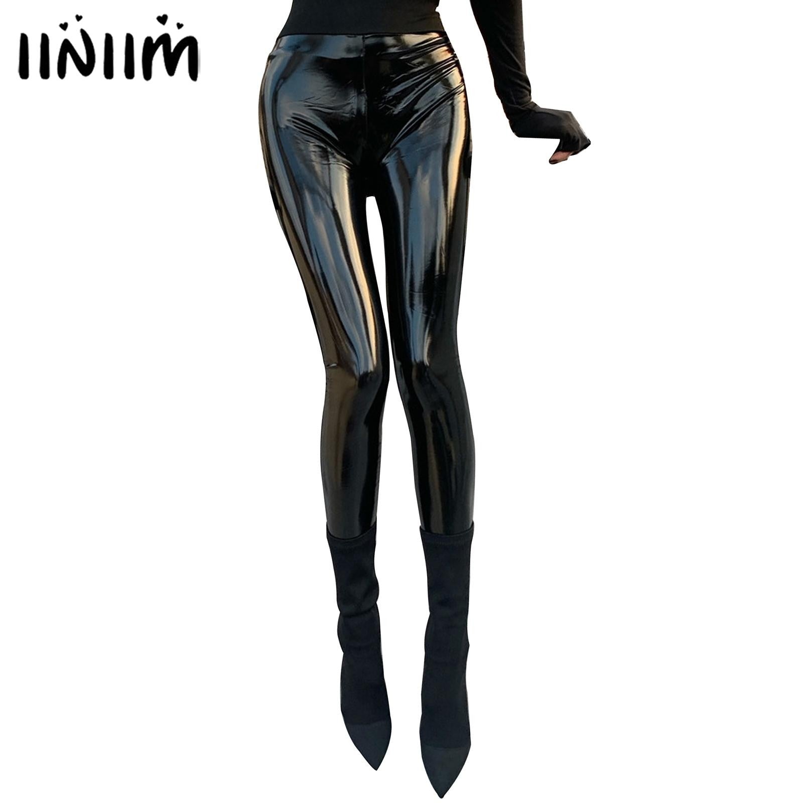 Womens Fashion Patent Leather Latex Pants Wet Look High Waist Stretchy Leggings Skinny Trousers Party Clubwear for Pole Dancing