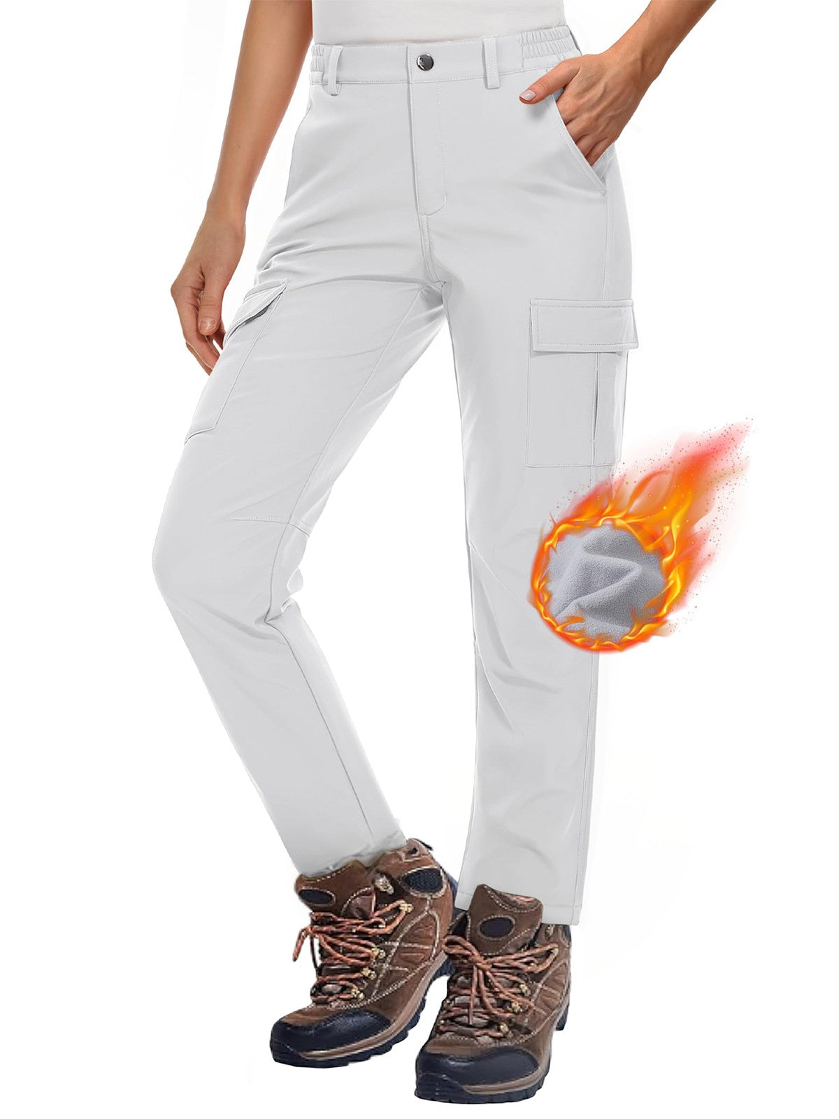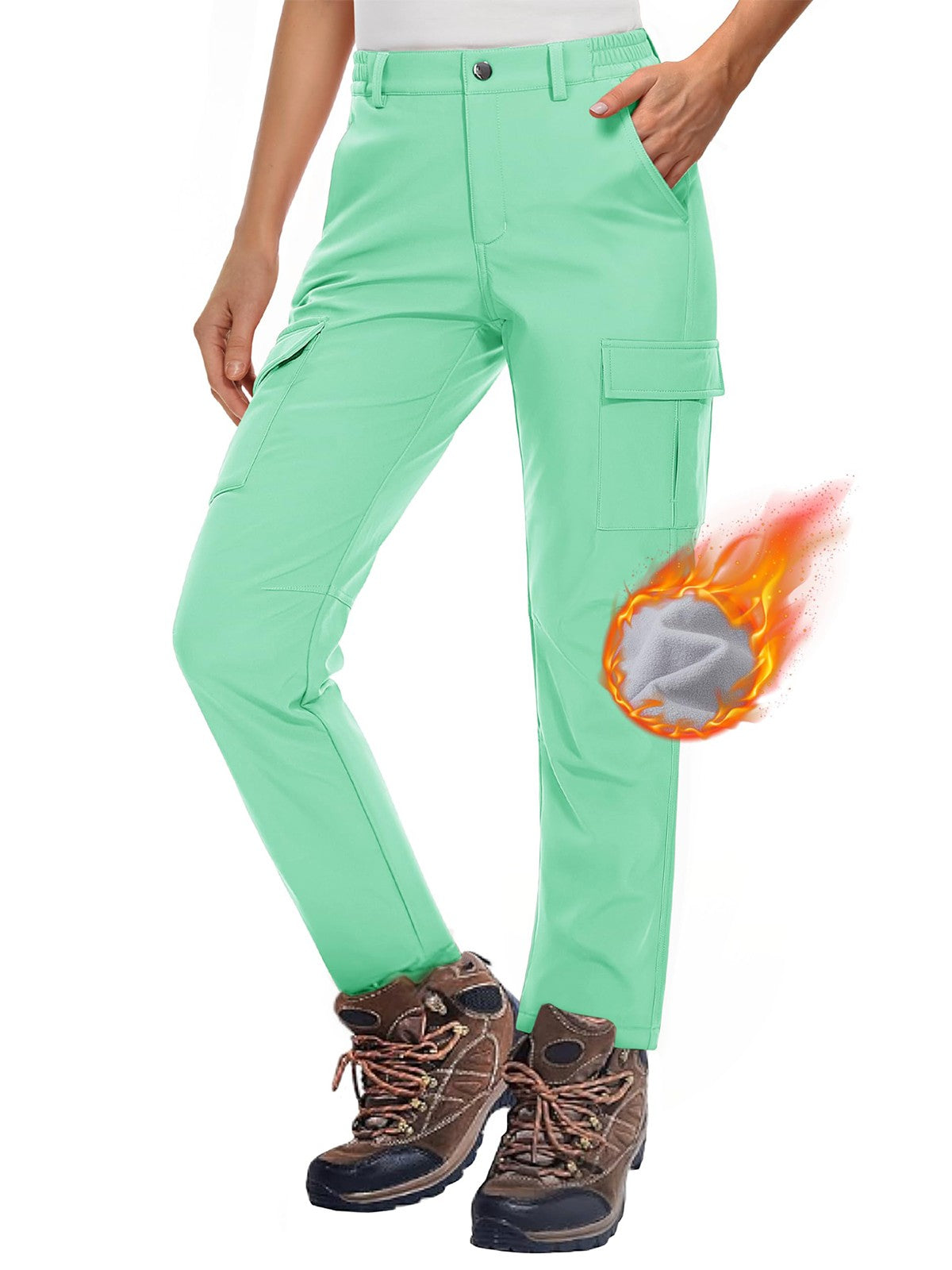 MAGCOMSEN Women's Softshell Pants Fleece Lined Winter Hiking Ladies Pants Snow Ski Trousers Waterproof Ripstop Warm Cargo Pants