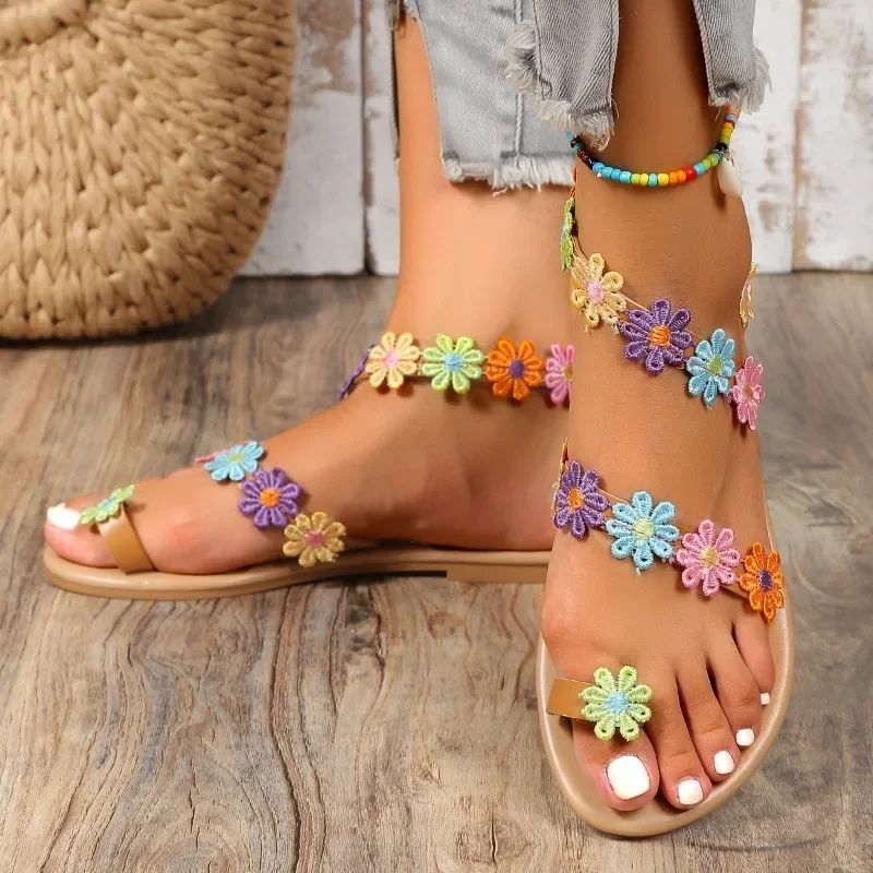 Summer New Flat Sandals Colorful Butterfly Flower Decorated Beach Sandals Outdoor Large Size Women's Sandals for Women
