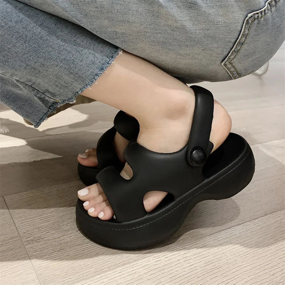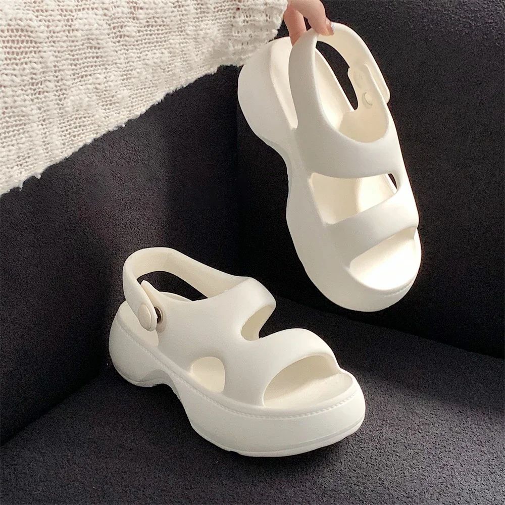Summer Women's Sandals Solid Color Platform Sporty Style Non Slip Outdoor Shoes EVA Minimalist Beach Height Increasing Sandals
