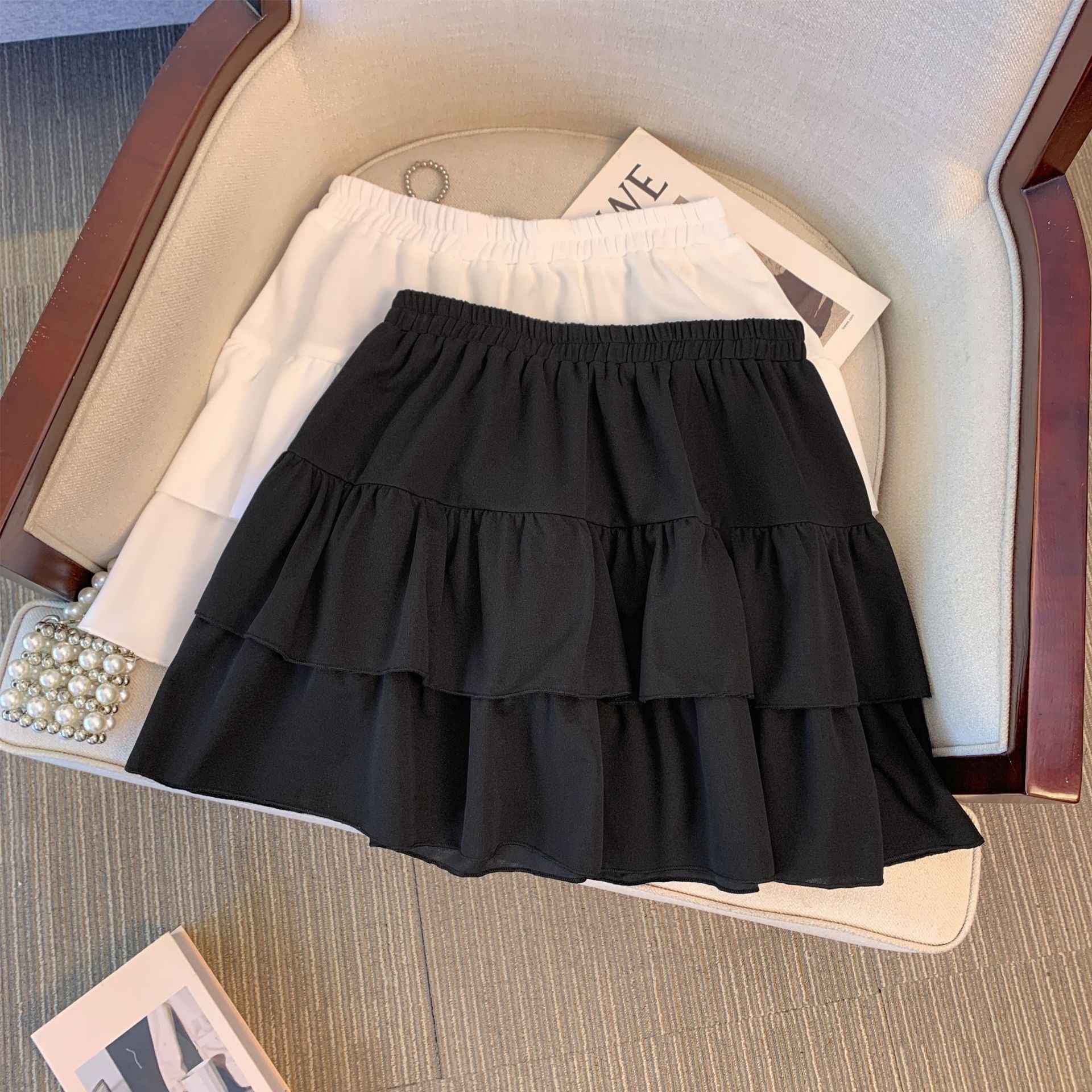 150Kg Plus Size Women's Hip 165 Cake Short Skirt Casual Pleated Ruffled Edge Skirt Black White 5XL 6XL 7XL 8XL 9XL