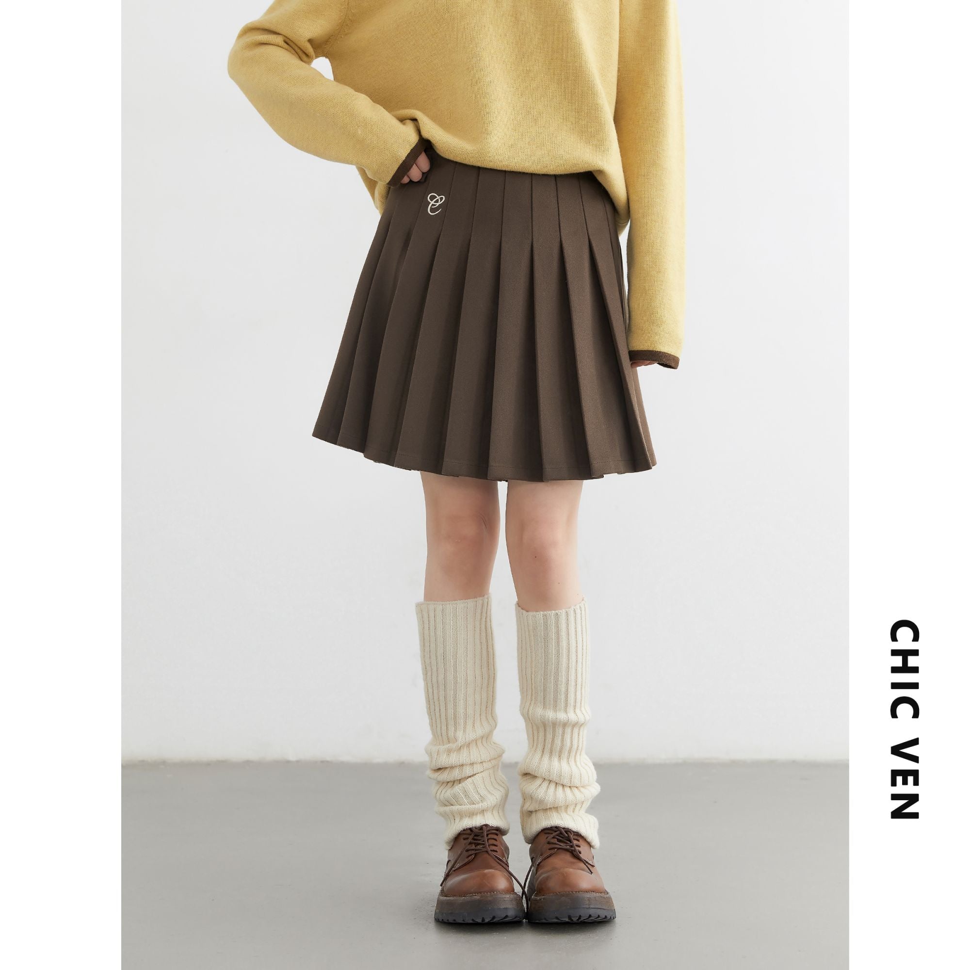 CHIC VEN Women Pleated Skirt High Waist Casual Preppy Style A-line Thick Mini Skirt for Girl Autumn Winter 2025 Ladies Clothing