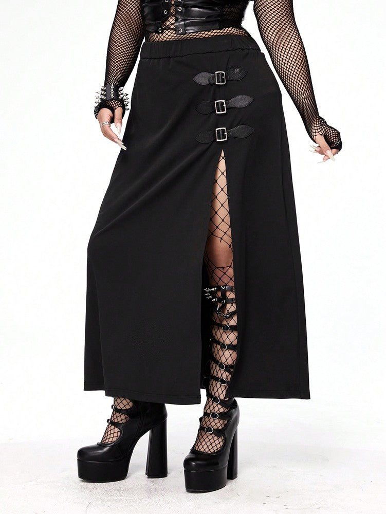 New autumn and winter 2024 plus size women's skirt with gentle, elegant and temperament style, slit design and solid color.