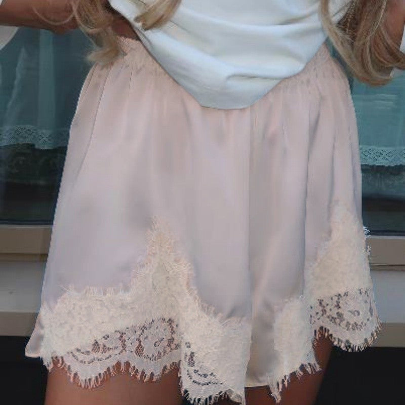 Women Y2k Slik Lace Trim Shorts Stain Pajama Micro Mini Slip Boxer Shorts Low Rise Lounge Pj Bottoms Pettipants Streetwear