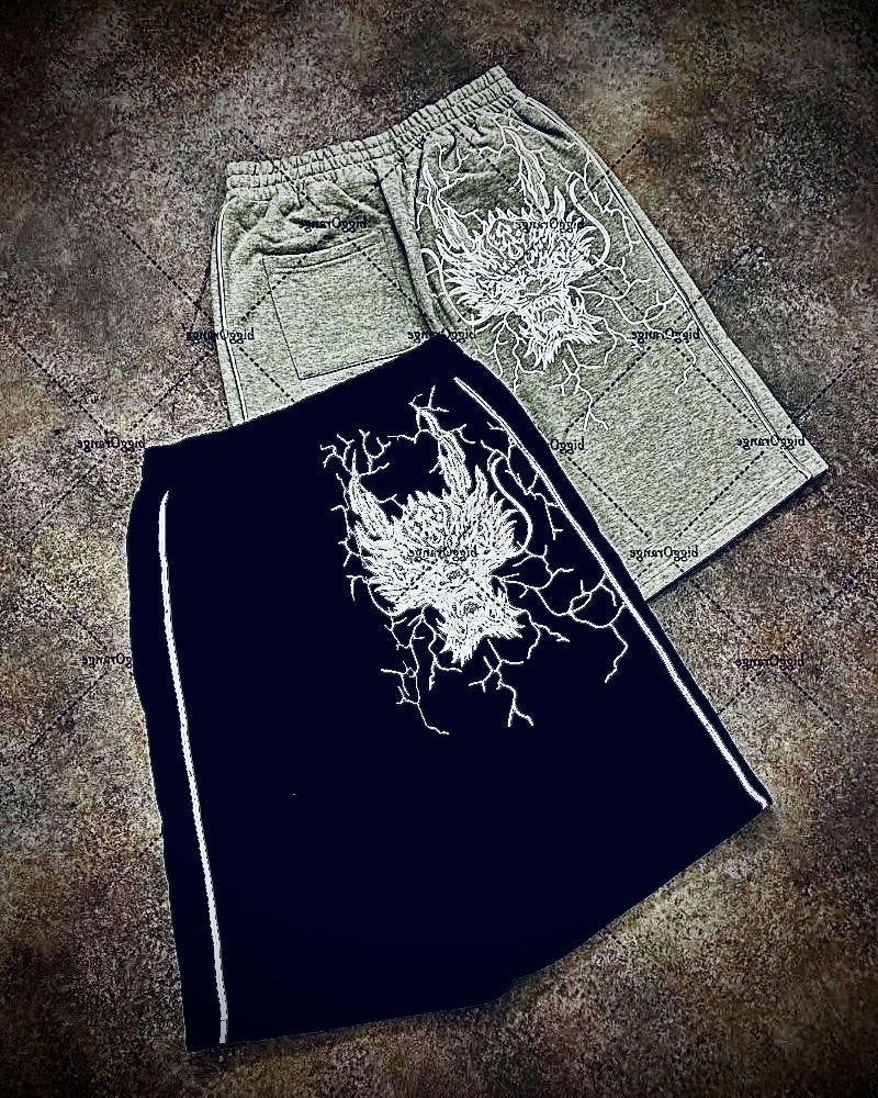 American Hip-hop Dragon Head Striped Casual Loose Shorts Men 2025 High Street Retro Punk Fashion Oversized Straight Pants Women