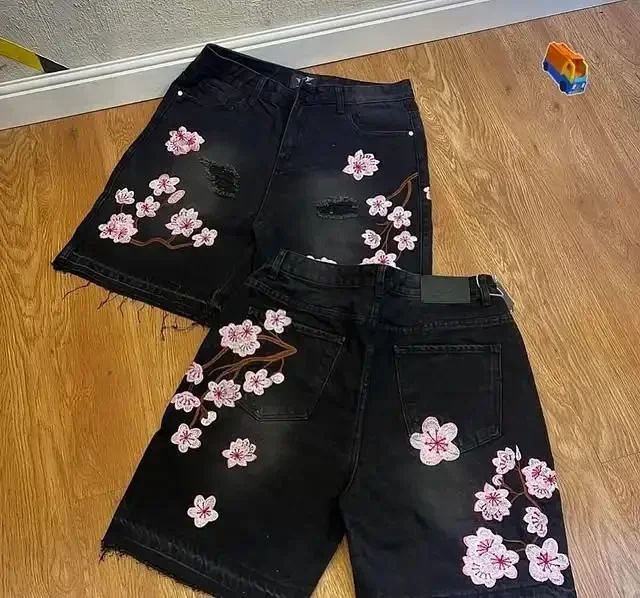 Y2K Willow Nail Denim Shorts Men Women Gothic Punk Style Embroidered Applique Design Loose Casual Jeans Fashion Retro Streetwear