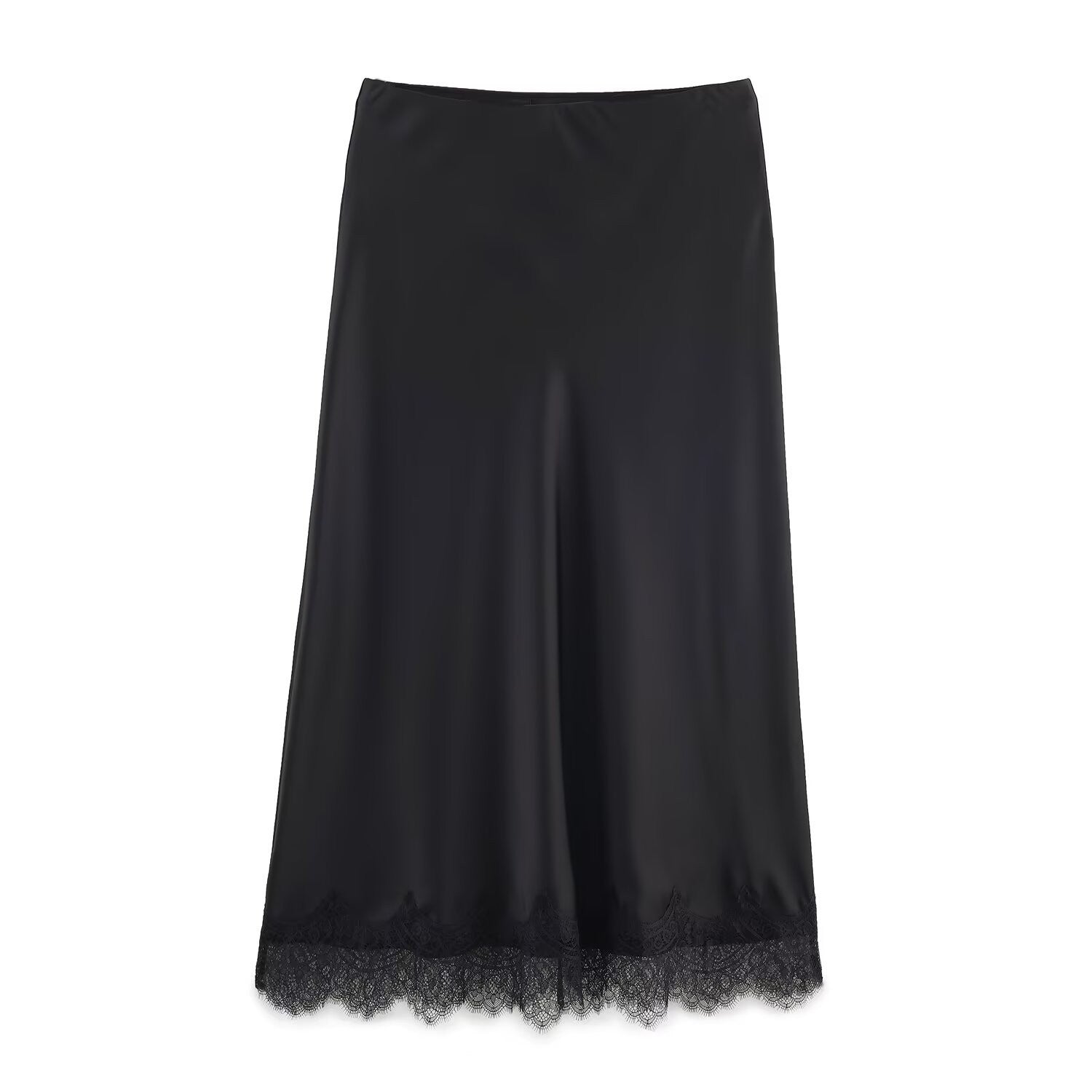 Sexy Satin Half-length Skirt for Women Autumn 2025 Fashionable Trendy Girl Long Skirt A- line Lace Embellished Commute Style