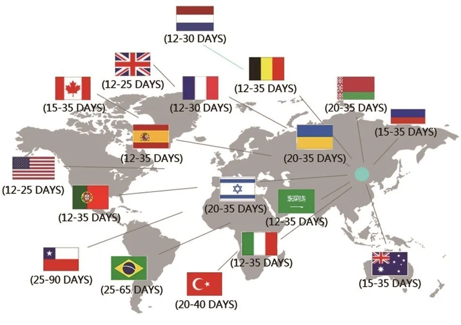 West Euro, Mid-East, Oceania and East Euro Usually Takes 10-30 Working Days