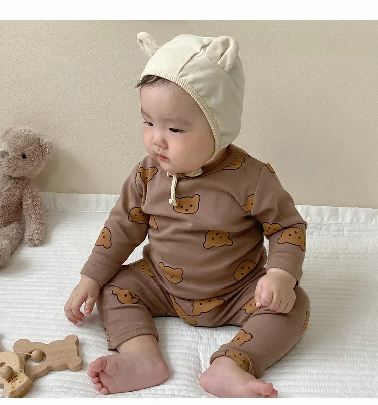 0-3T Baby Cotton Top Pant Suit Newborn Kid Boys Girls Clothes Set Long Sleeve Pj Set Cute Sweet Sleepwear Pajamas Set Outfit