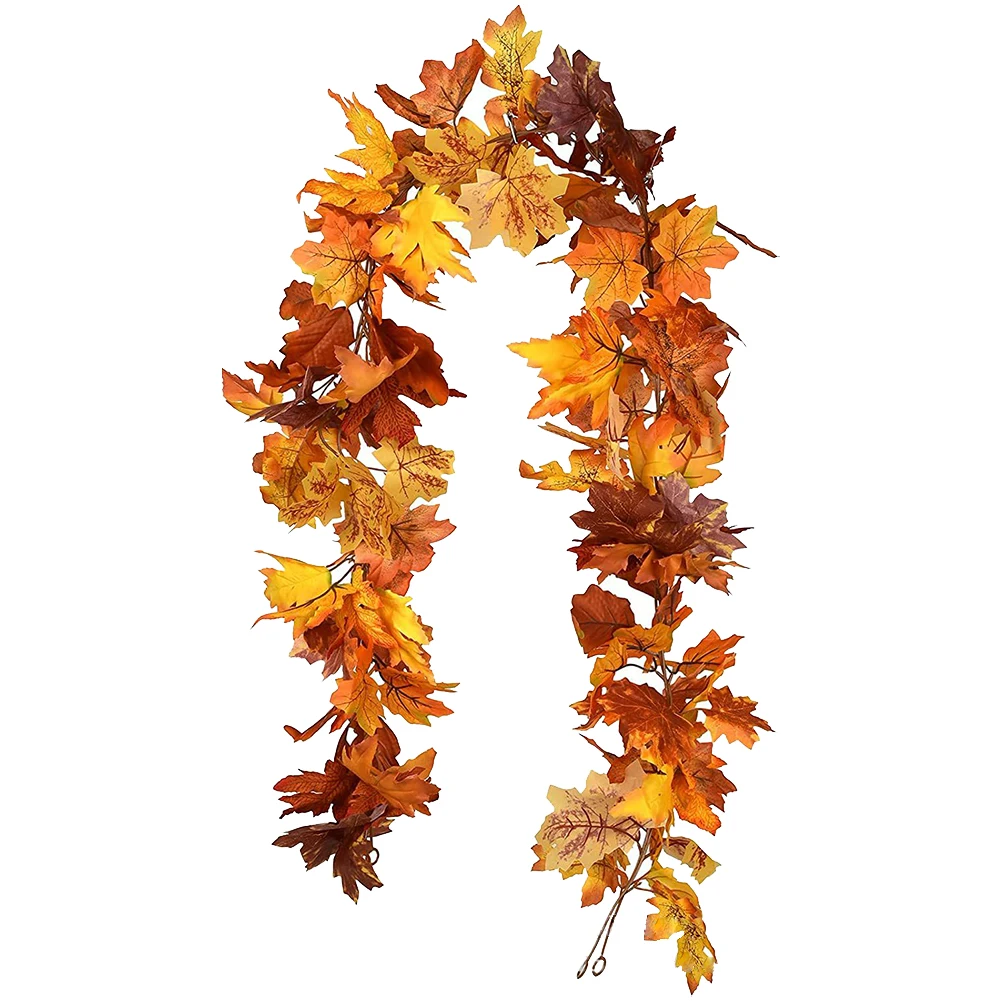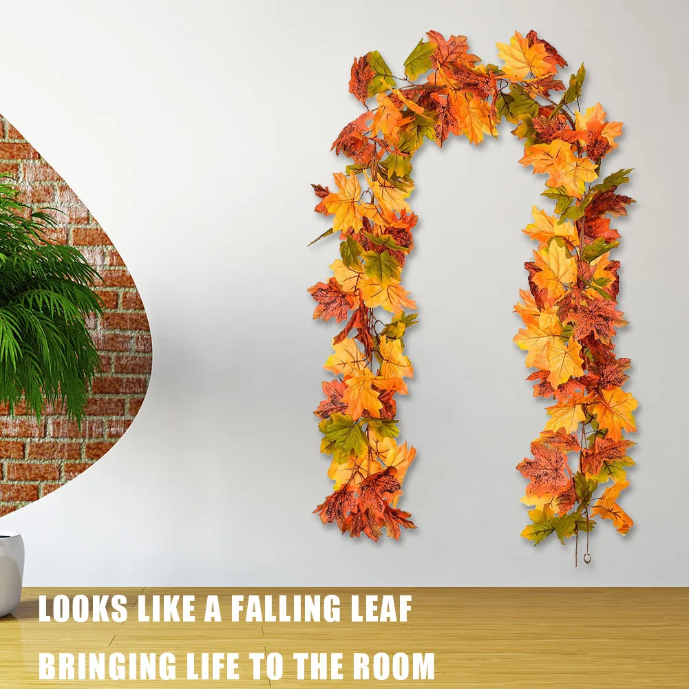 1/2Pcs 175cm Artificial Fall Maple Leaf Garland Fake Plants Autumn Decor Leaves Vine for Thanksgiving Halloween Decoration Gifts