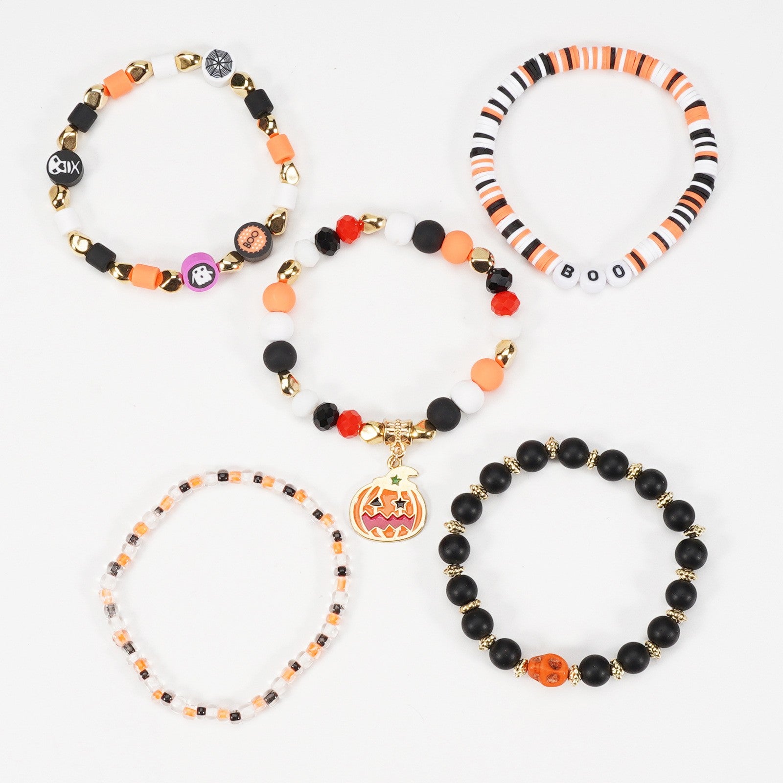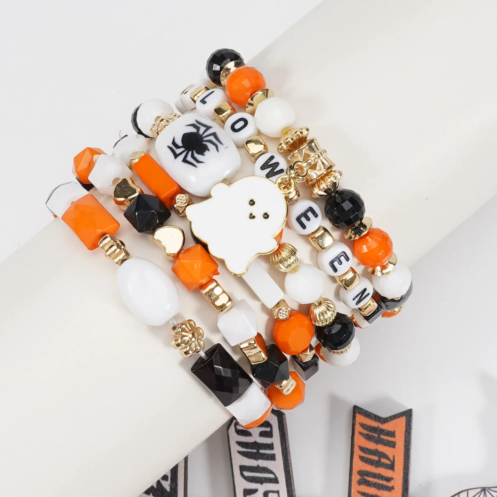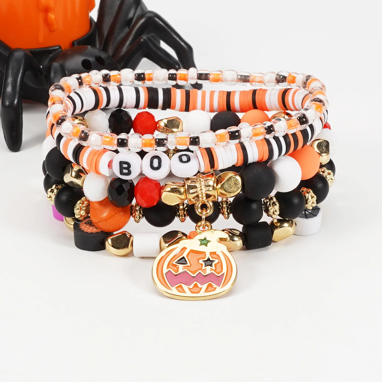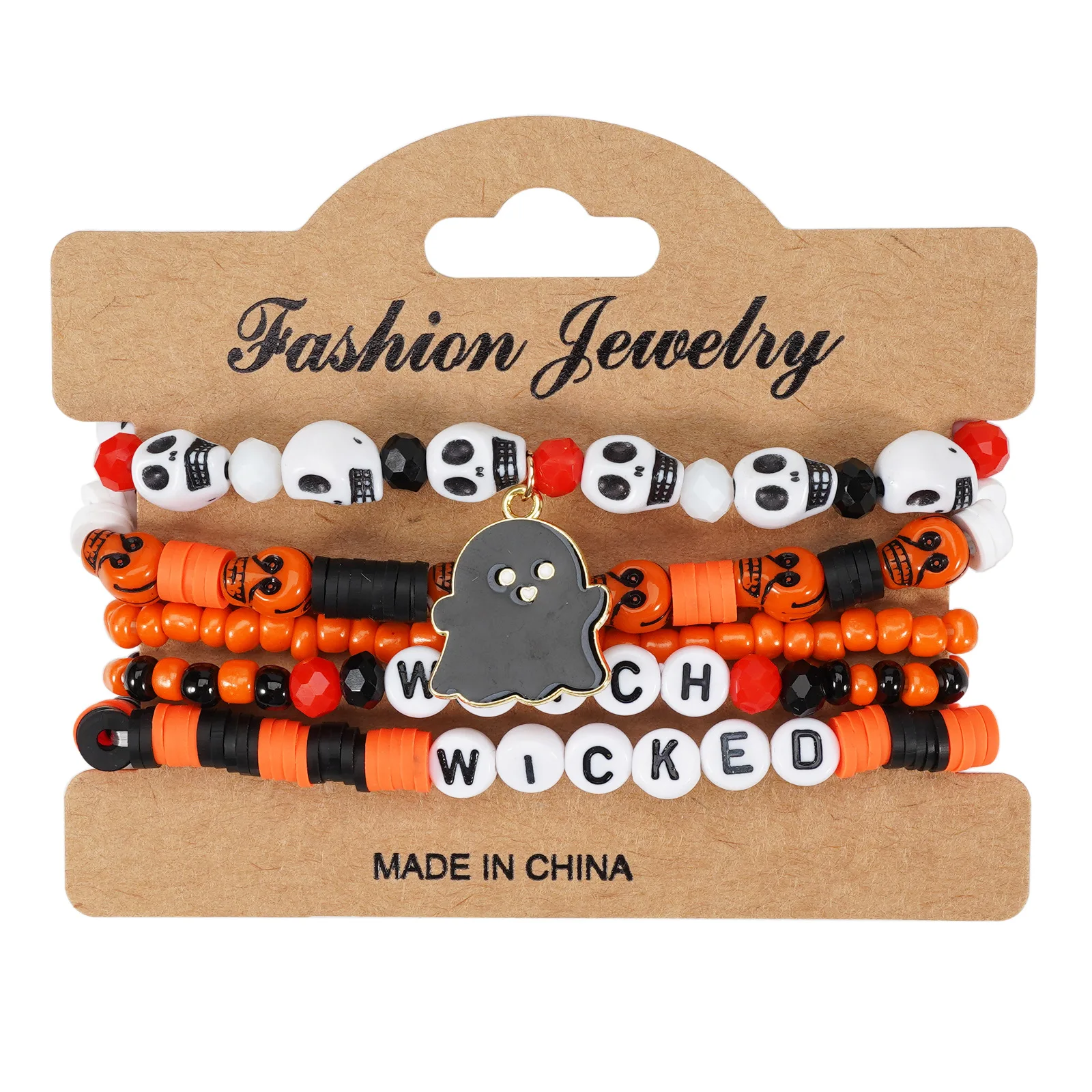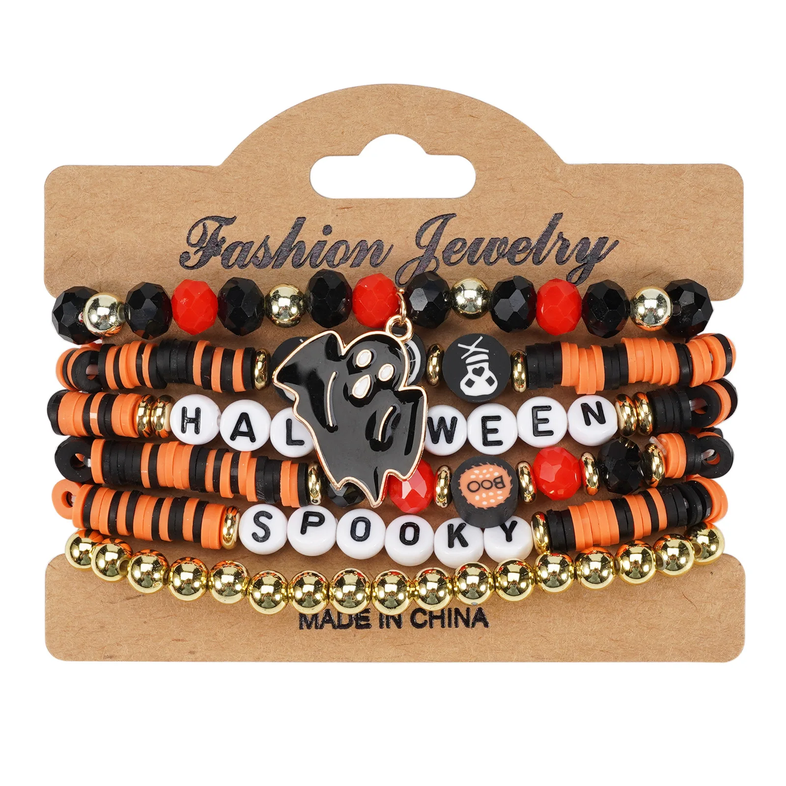 1/2pcs Halloween Bracelet Artificial Crystal Soft Ceramic Bead Bracelet Pumpkin Ghost Bat Hat Pendant Party Bracelet